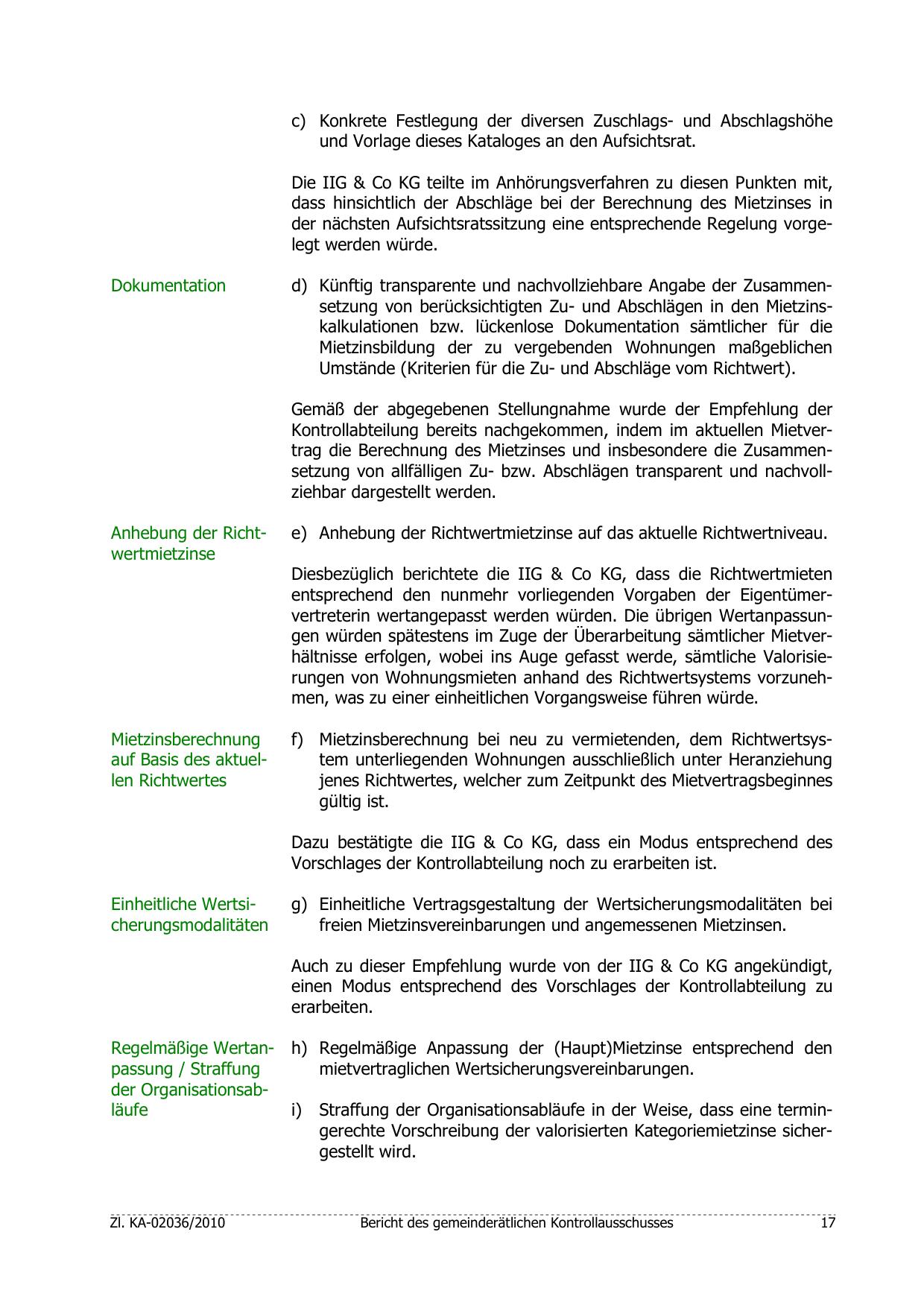 Die IIG & Co KG teilte im Anhörungsverfahren zu diesen Punkten mit,