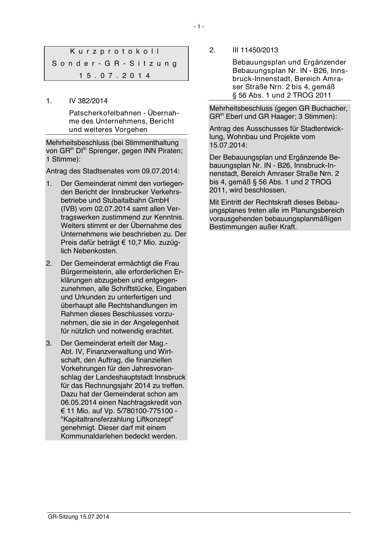 Mehrheitsbeschluss (gegen GR Buchacher,