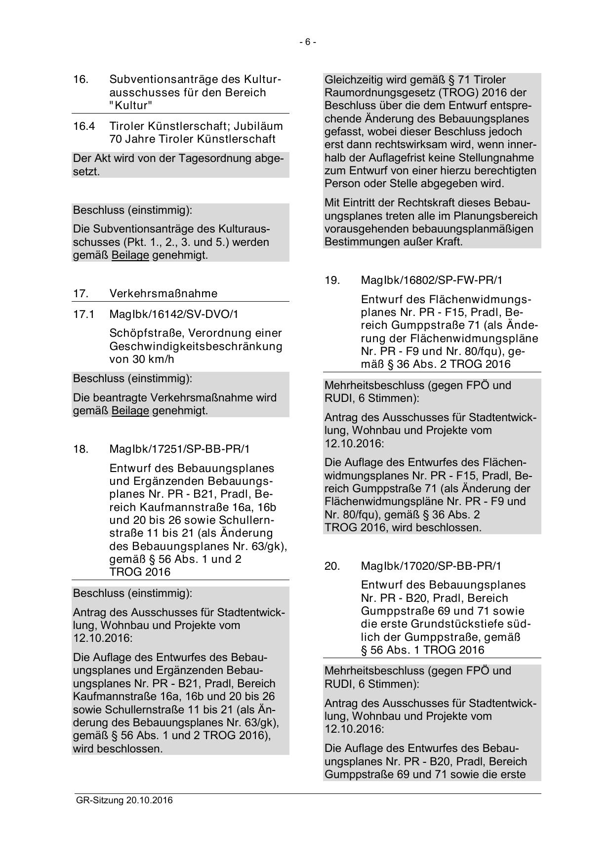 Nr. PR - F9 und Nr. 80/fqu), gemäß § 36 Abs. 2 TROG 2016