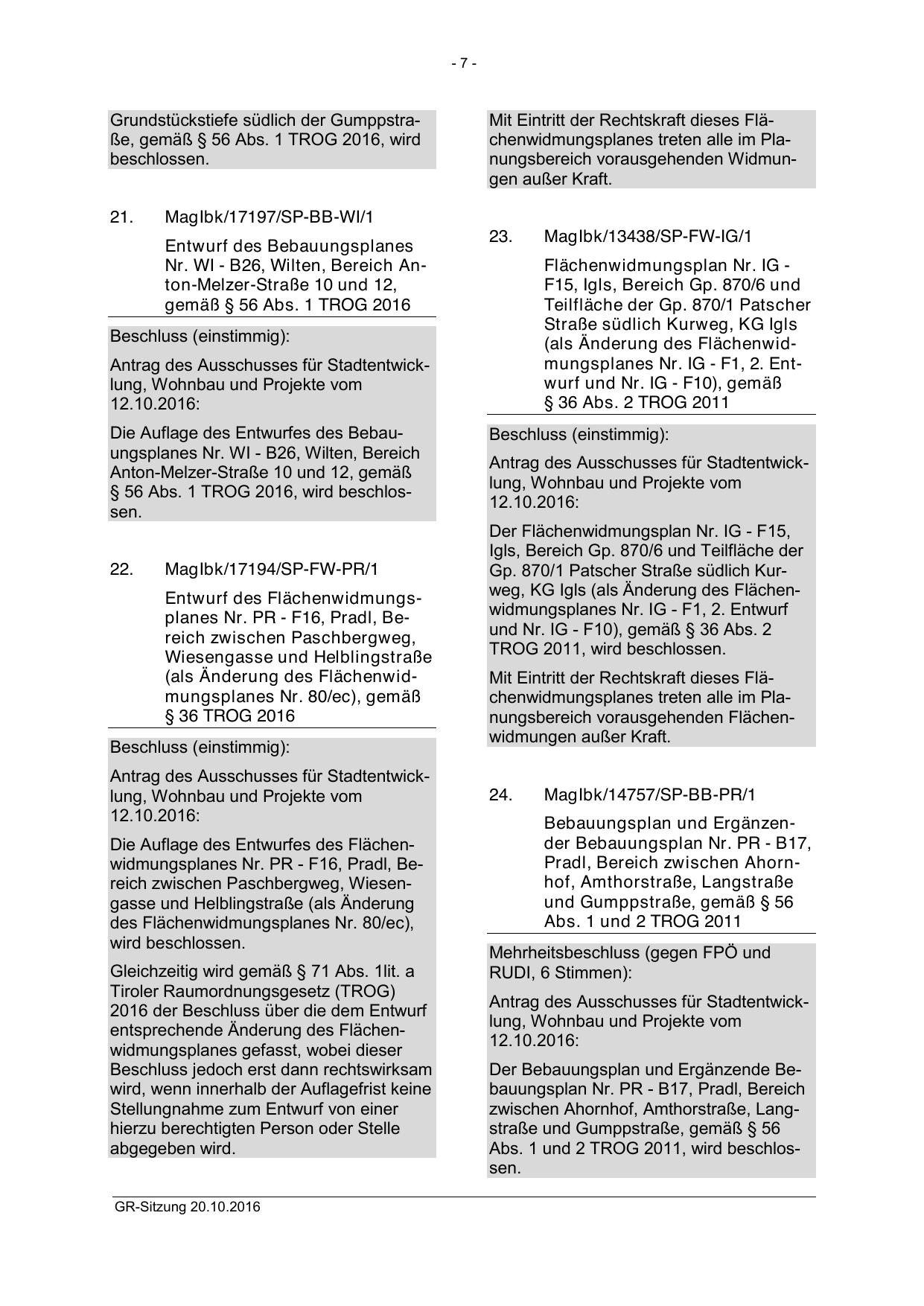 § 56 Abs. 1 TROG 2016, wird beschlossen.