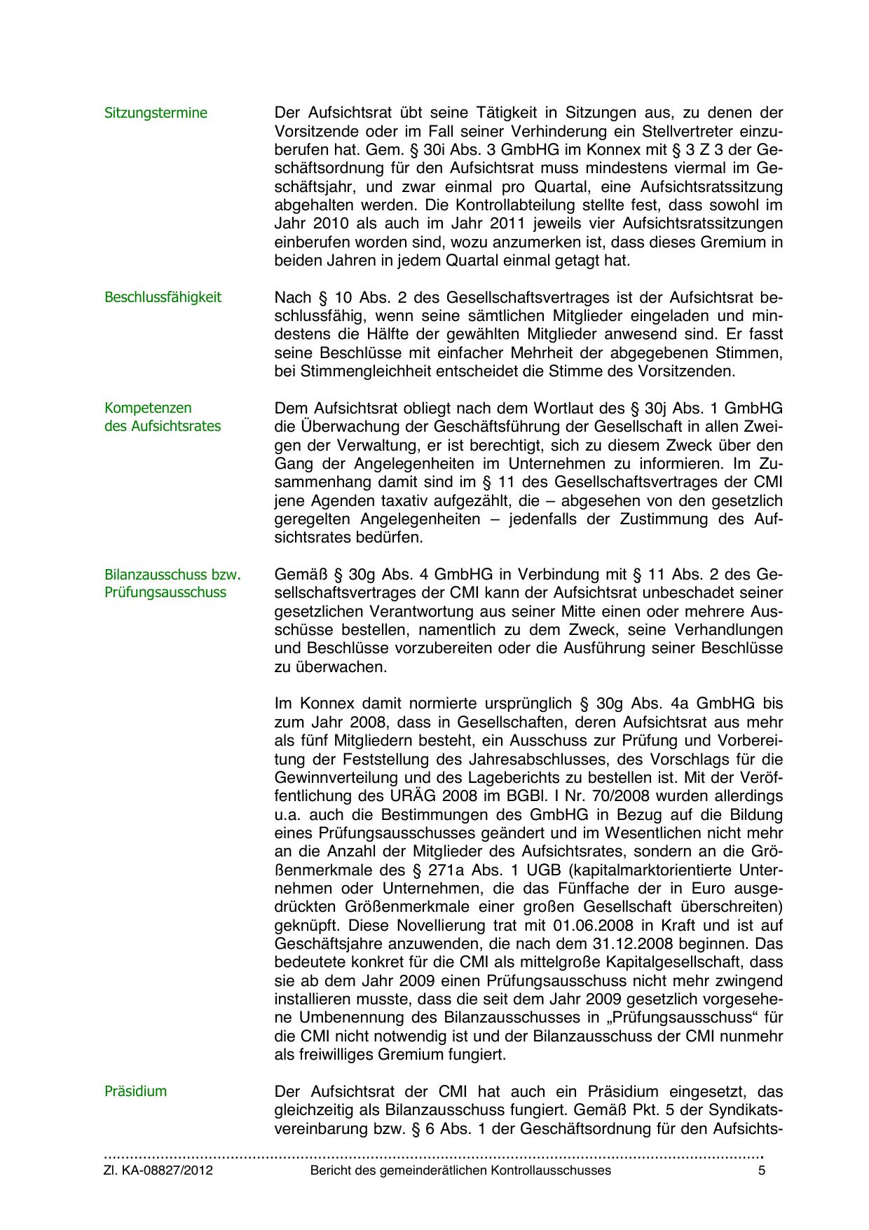 gleichzeitig als Bilanzausschuss fungiert. Gemäß Pkt. 5 der Syndikatsvereinbarung bzw. § 6 Abs. 1 der Geschäftsordnung für den AufsichtsBericht des gemeinderätlichen Kontrollausschusses