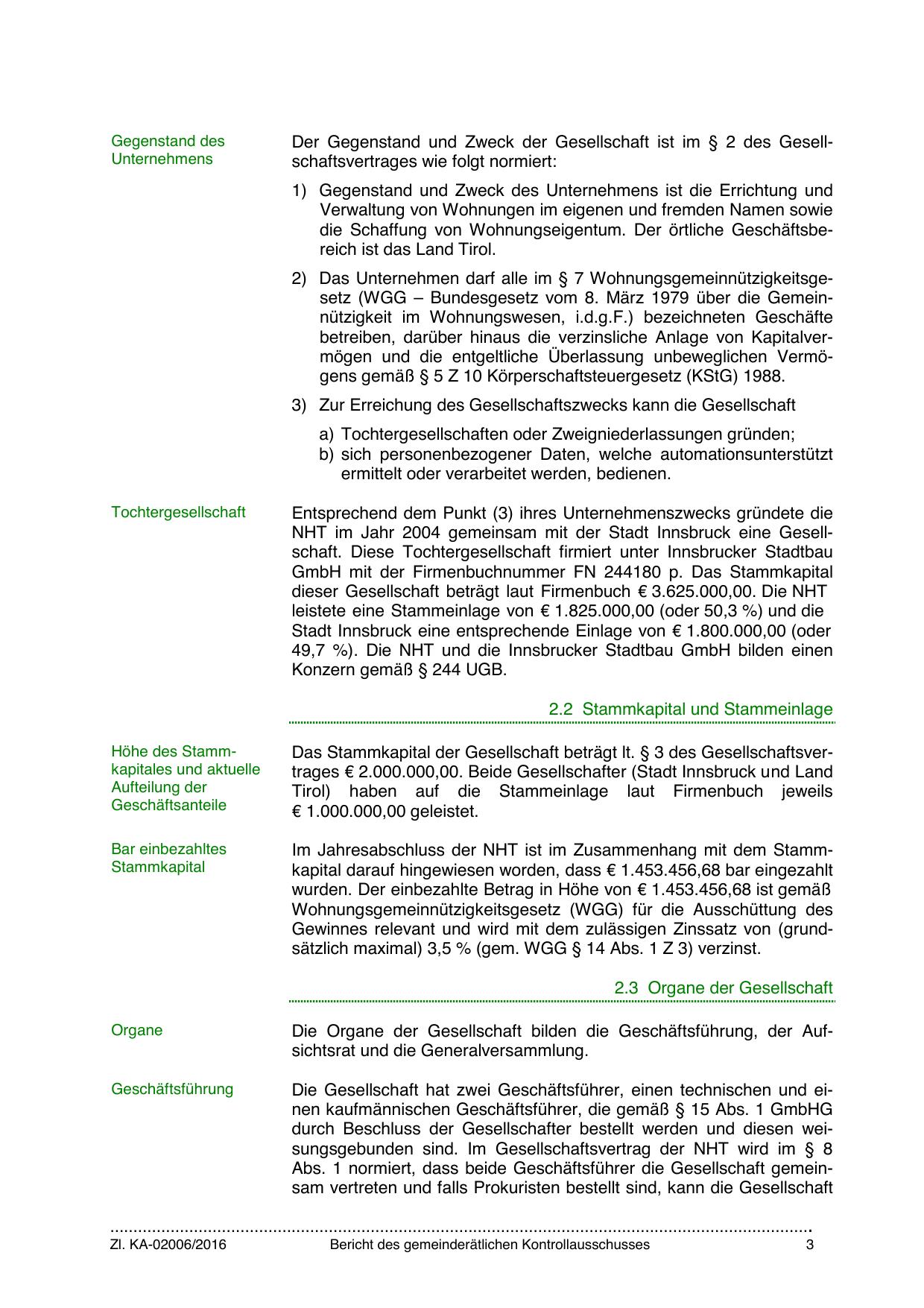 Das Stammkapital der Gesellschaft beträgt lt. § 3 des Gesellschaftsvertrages € 2.000.000,00. Beide Gesellschafter (Stadt Innsbruck und Land
