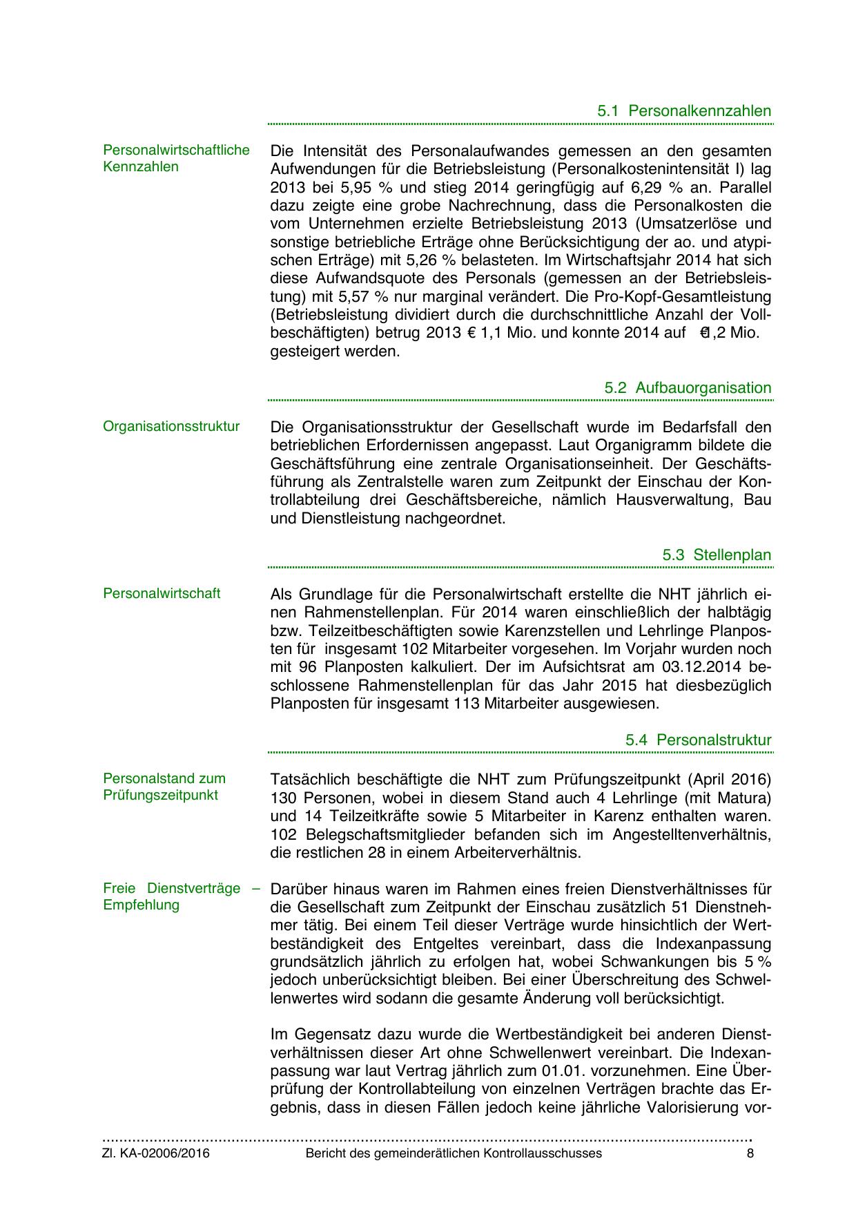 Im Gegensatz dazu wurde die Wertbeständigkeit bei anderen Dienstverhältnissen dieser Art ohne Schwellenwert vereinbart. Die Indexanpassung war laut Vertrag jährlich zum 01.01. vorzunehmen. Eine Überprüfung der Kontrollabteilung von einzelnen Verträgen brachte das Ergebnis, dass in diesen Fällen jedoch keine jährliche Valorisierung vorZl. KA-02006/2016