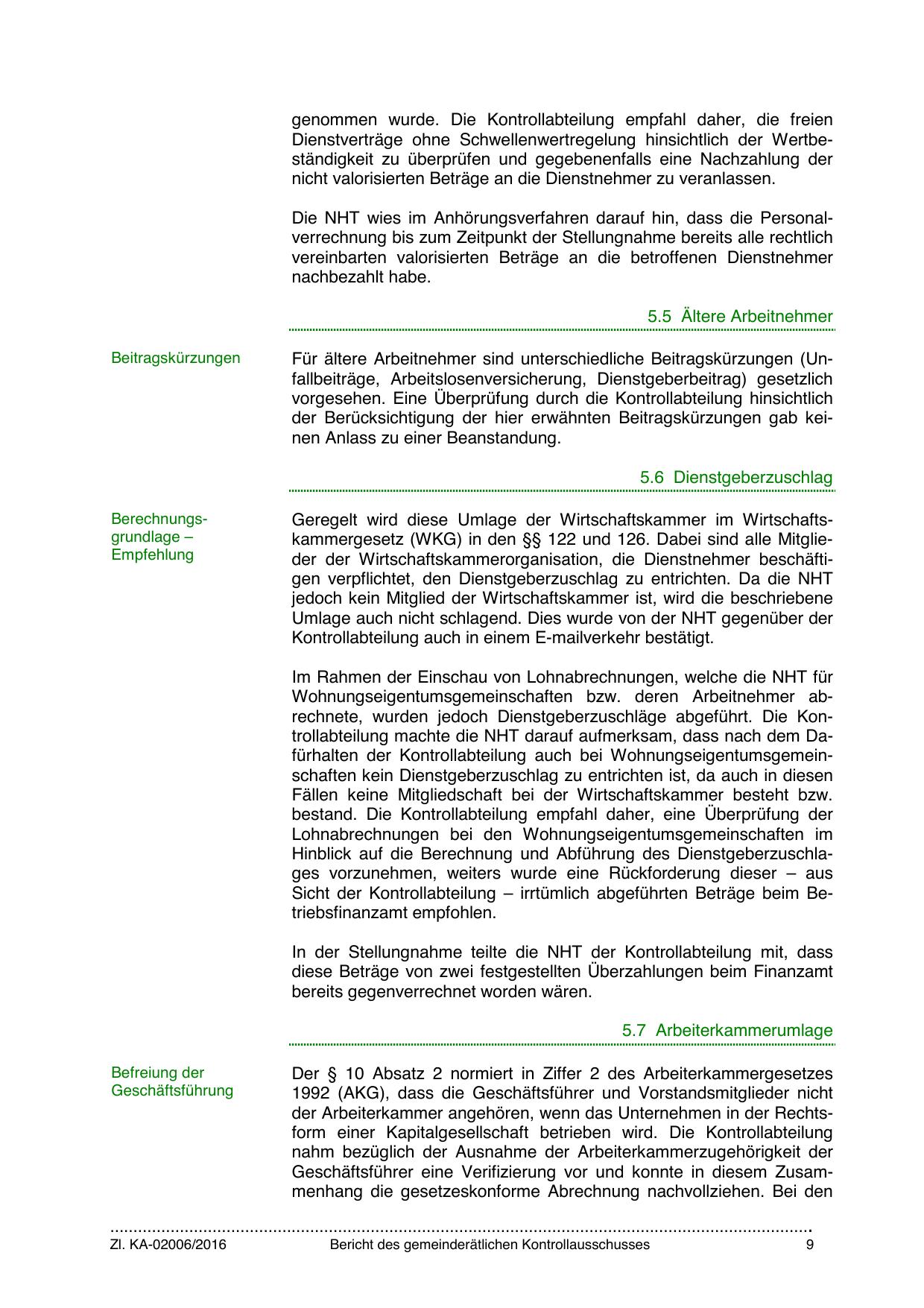 Wohnungseigentumsgemeinschaften bzw. deren Arbeitnehmer abrechnete, wurden jedoch Dienstgeberzuschläge abgeführt. Die Kontrollabteilung machte die NHT darauf aufmerksam, dass nach dem Dafürhalten der Kontrollabteilung auch bei Wohnungseigentumsgemeinschaften kein Dienstgeberzuschlag zu entrichten ist, da auch in diesen