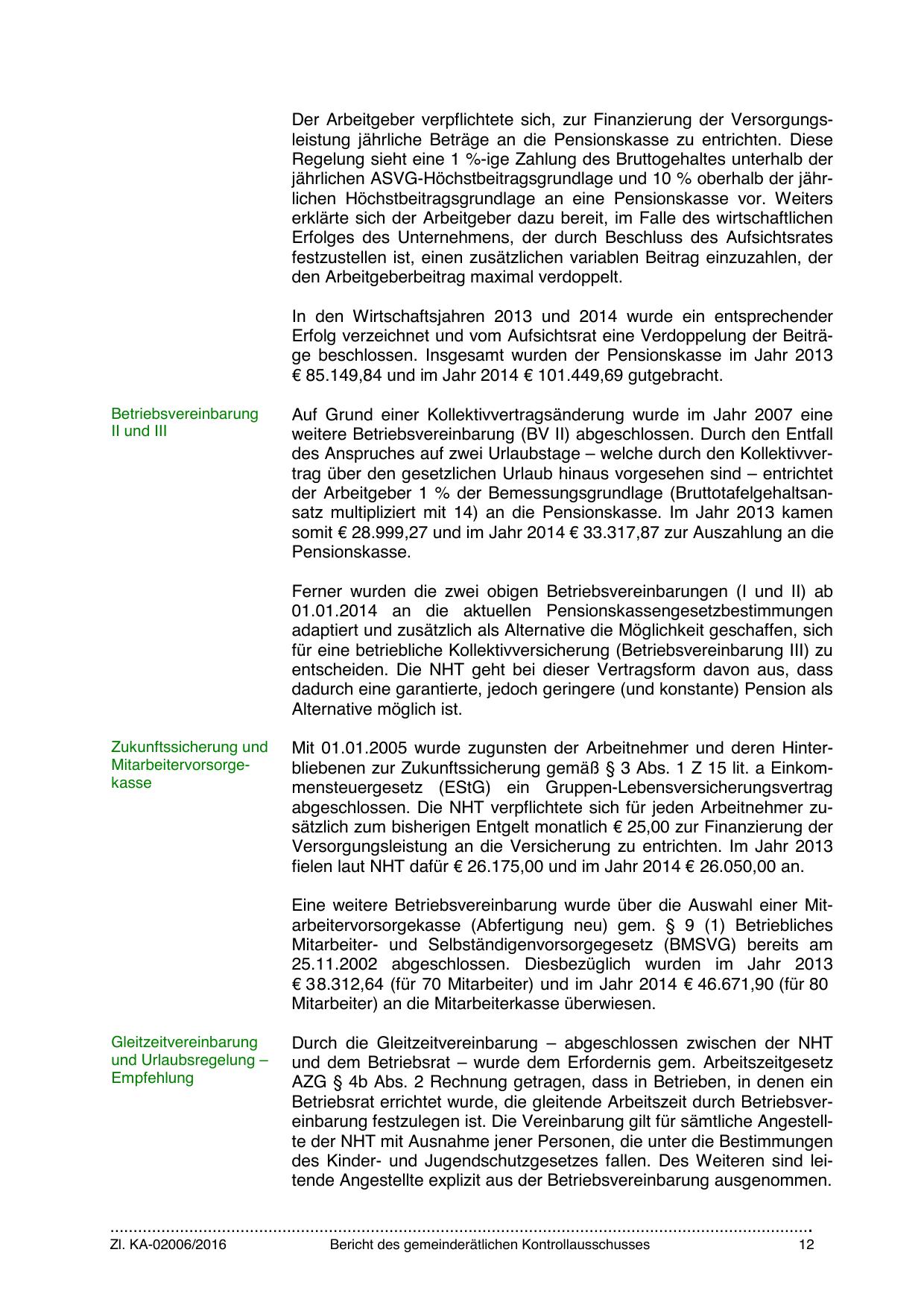 abgeschlossen. Die NHT verpflichtete sich für jeden Arbeitnehmer zusätzlich zum bisherigen Entgelt monatlich € 25,00 zur Finanzierung der