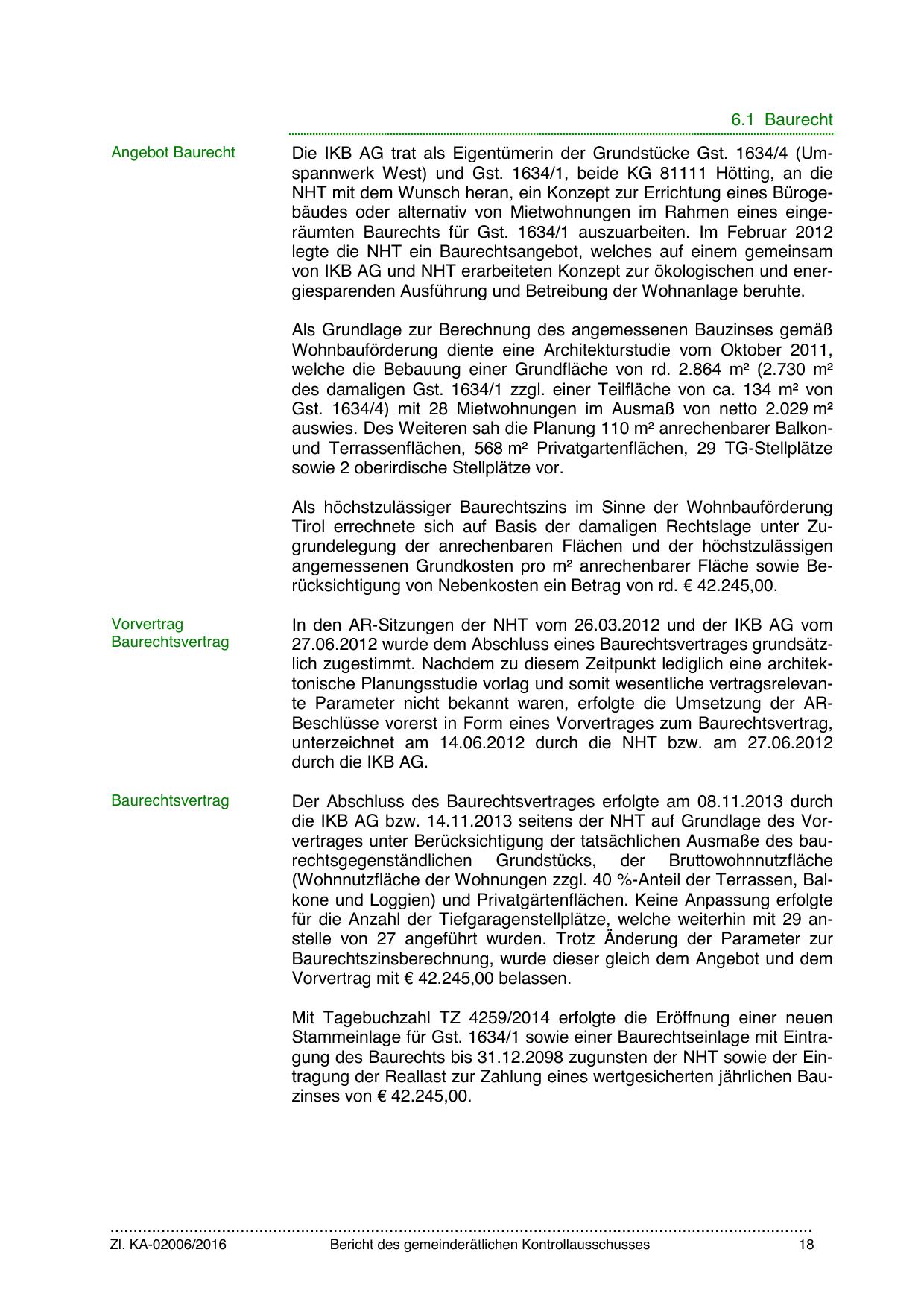 die IKB AG bzw. 14.11.2013 seitens der NHT auf Grundlage des Vorvertrages unter Berücksichtigung der tatsächlichen Ausmaße des baurechtsgegenständlichen Grundstücks, der Bruttowohnnutzfläche