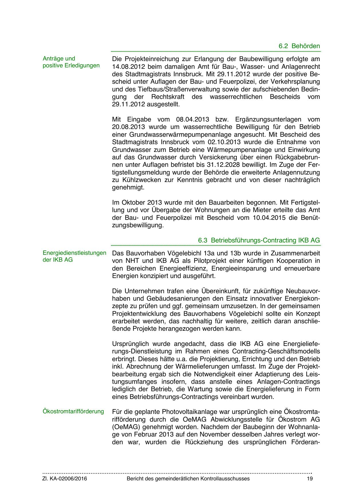 des Stadtmagistrats Innsbruck. Mit 29.11.2012 wurde der positive Bescheid unter Auflagen der Bau- und Feuerpolizei, der Verkehrsplanung