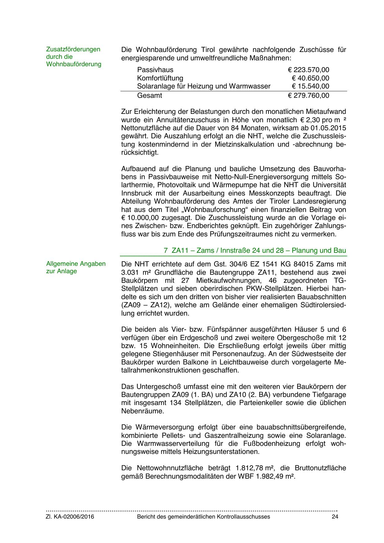 Die Wohnbauförderung Tirol gewährte nachfolgende Zuschüsse für