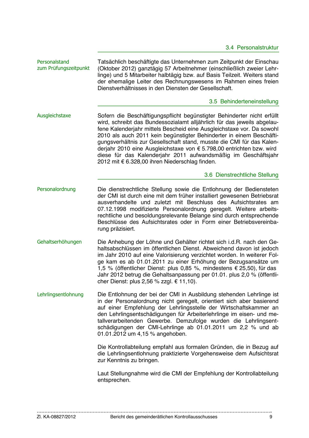 den Lehrlingsentschädigungen für Arbeiterlehrlinge im eisen- und metallverarbeitenden Gewerbe. Demzufolge wurden die Lehrlingsentschädigungen der CMI-Lehrlinge ab 01.01.2011 um 2,2 % und ab