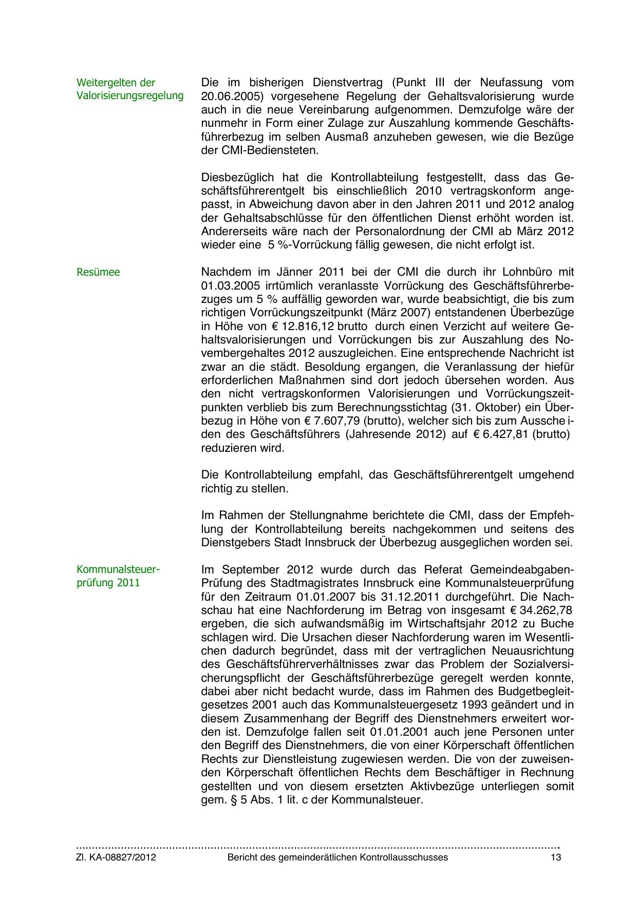 Im September 2012 wurde durch das Referat GemeindeabgabenPrüfung des Stadtmagistrates Innsbruck eine Kommunalsteuerprüfung