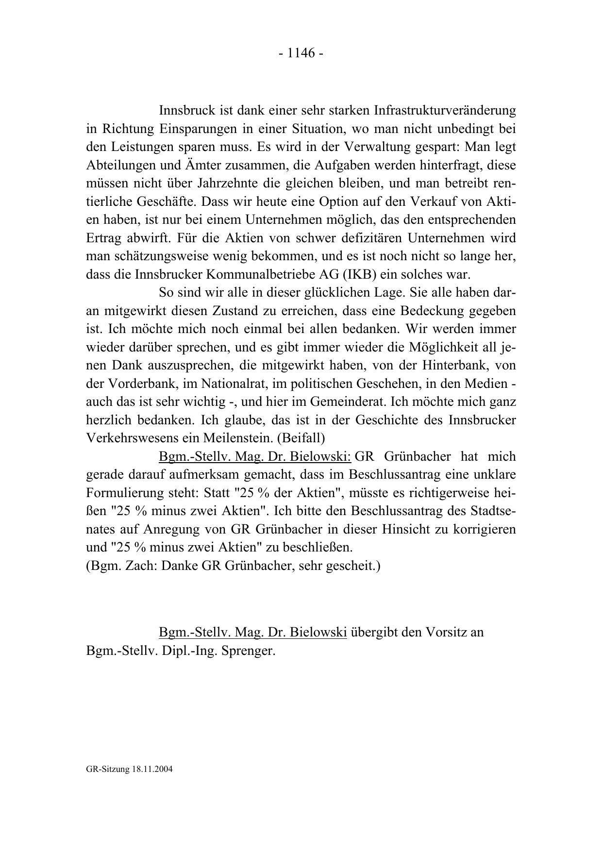 Bgm.-Stellv. Mag. Dr. Bielowski: GR Grünbacher hat mich
