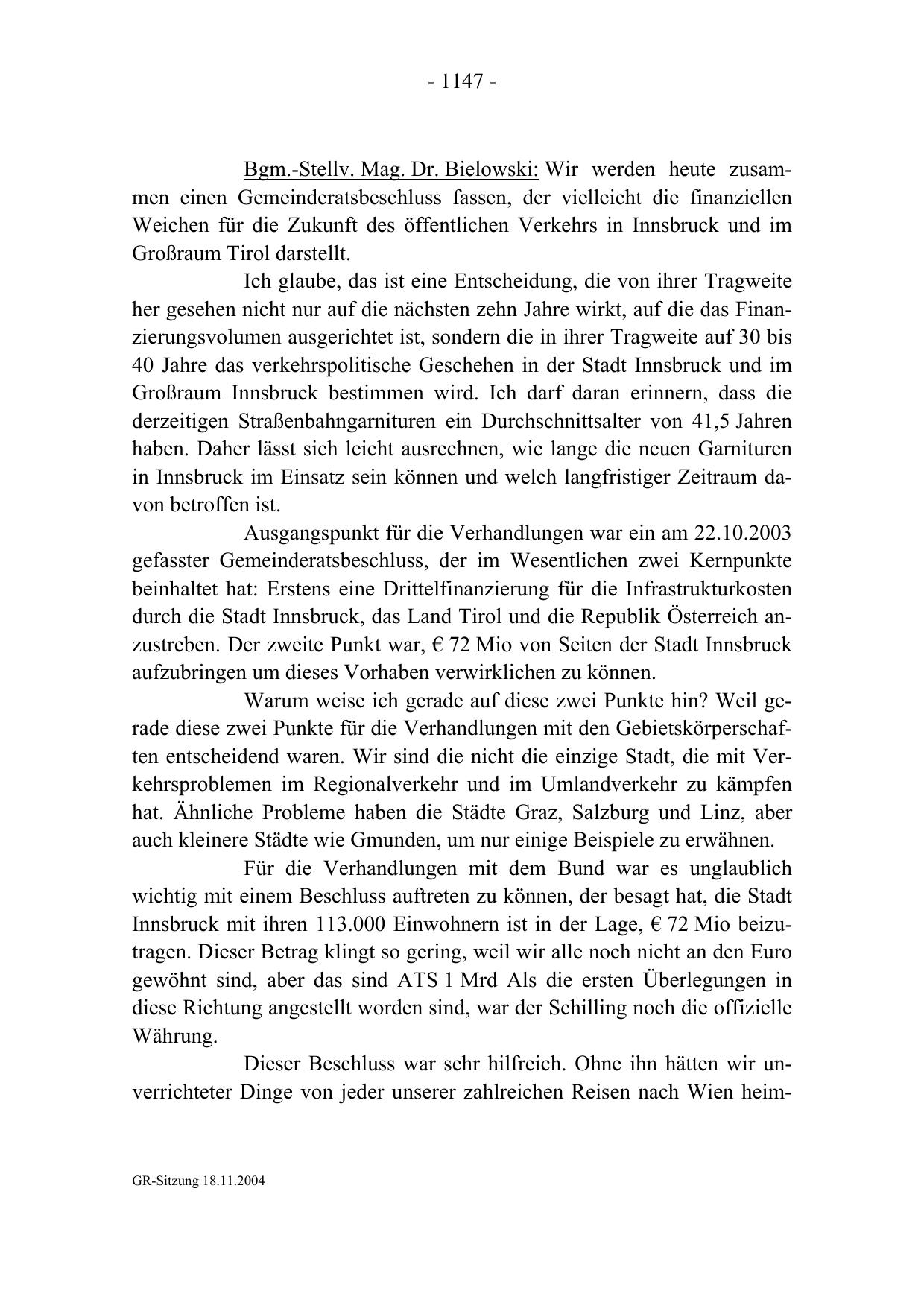 durch die Stadt Innsbruck, das Land Tirol und die Republik Österreich anzustreben. Der zweite Punkt war, € 72 Mio von Seiten der Stadt Innsbruck