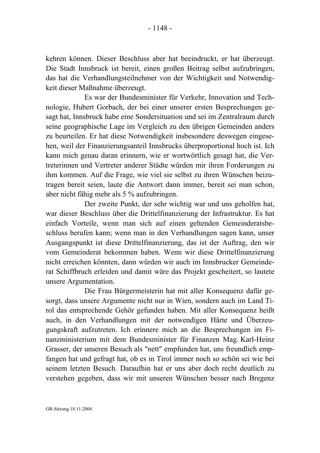 zu beurteilen. Er hat diese Notwendigkeit insbesondere deswegen eingesehen, weil der Finanzierungsanteil Innsbrucks überproportional hoch ist. Ich