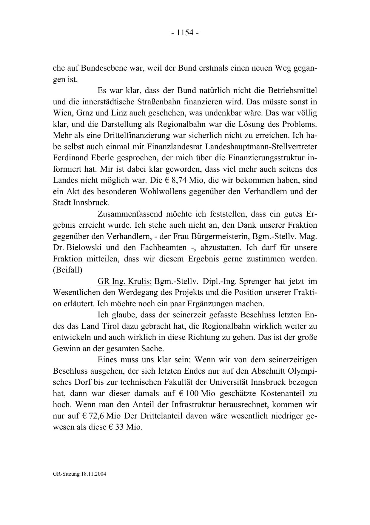 Ich glaube, dass der seinerzeit gefasste Beschluss letzten Endes das Land Tirol dazu gebracht hat, die Regionalbahn wirklich weiter zu