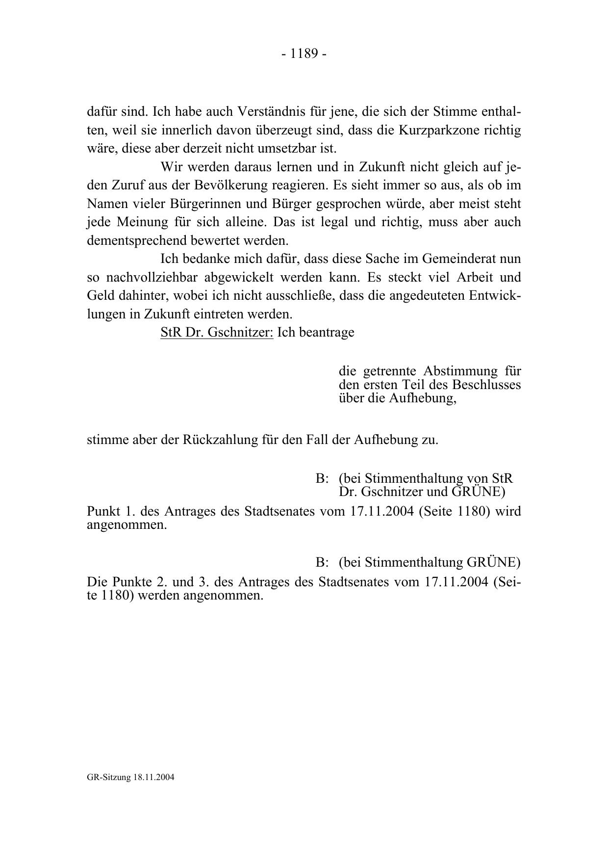 Die Punkte 2. und 3. des Antrages des Stadtsenates vom 17.11.2004 (Seite 1180) werden angenommen.