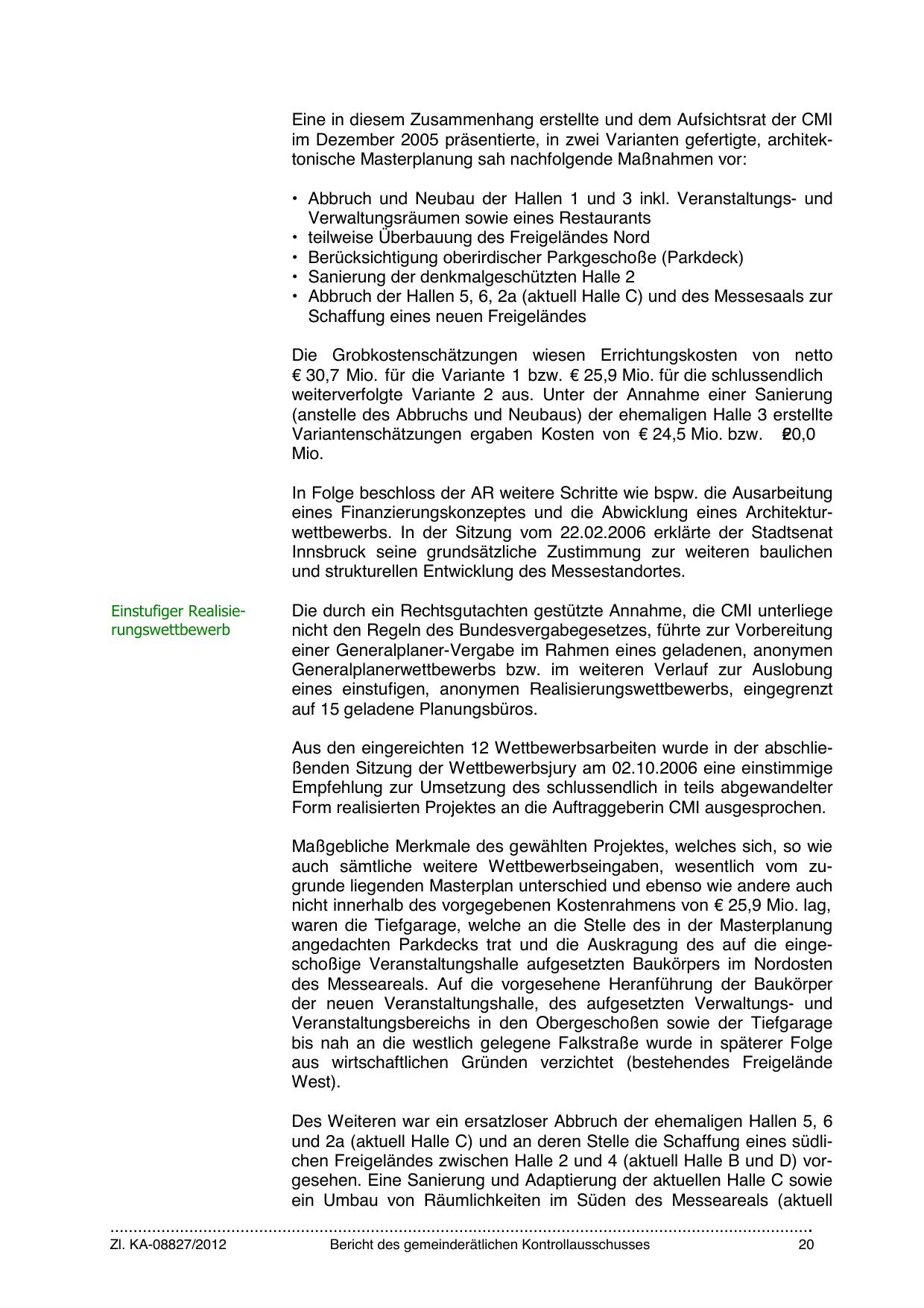 eines Finanzierungskonzeptes und die Abwicklung eines Architekturwettbewerbs. In der Sitzung vom 22.02.2006 erklärte der Stadtsenat