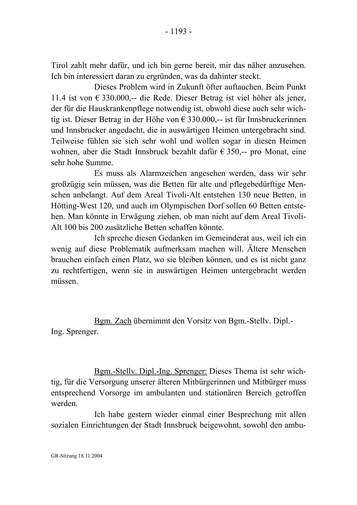 der für die Hauskrankenpflege notwendig ist, obwohl diese auch sehr wichtig ist. Dieser Betrag in der Höhe von € 330.000,-- ist für Innsbruckerinnen