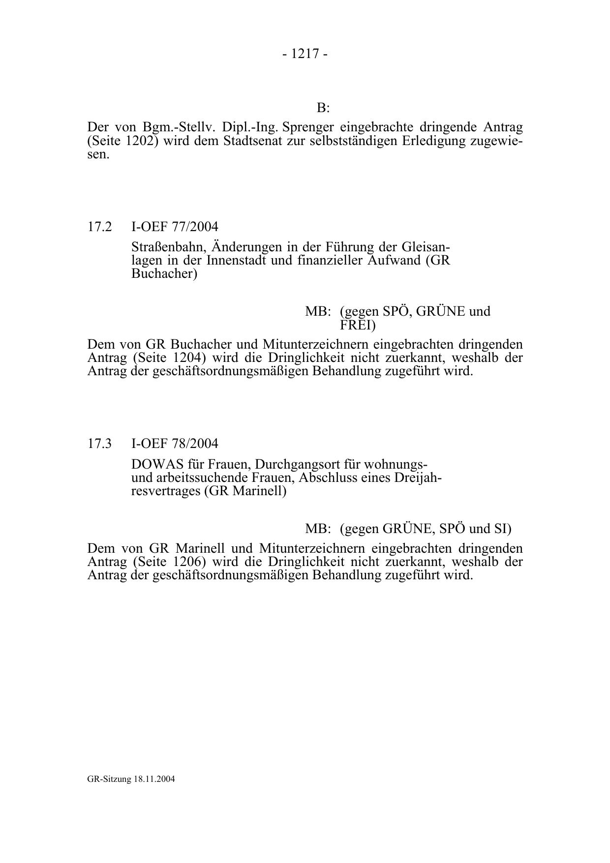 Antrag (Seite 1204) wird die Dringlichkeit nicht zuerkannt, weshalb der