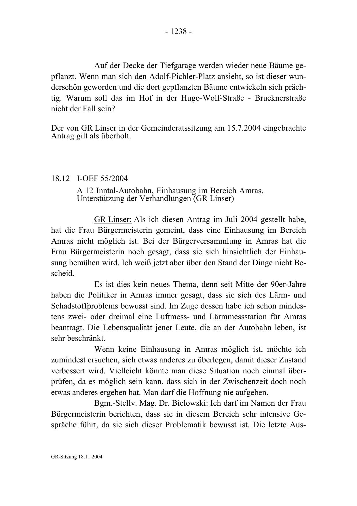 Der von GR Linser in der Gemeinderatssitzung am 15.7.2004 eingebrachte
