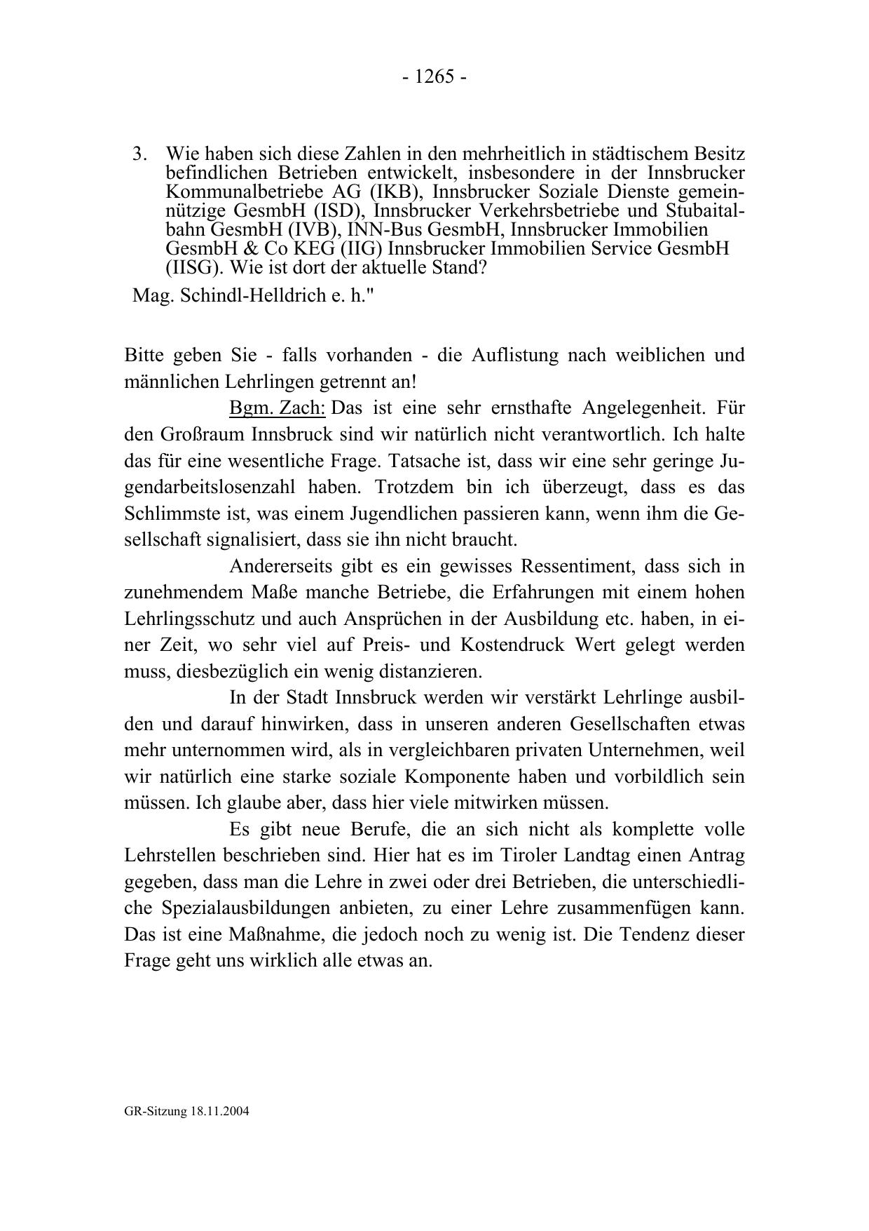 Bgm. Zach: Das ist eine sehr ernsthafte Angelegenheit. Für