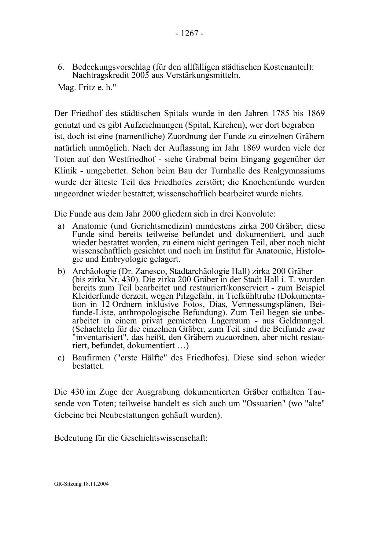 b) Archäologie (Dr. Zanesco, Stadtarchäologie Hall) zirka 200 Gräber