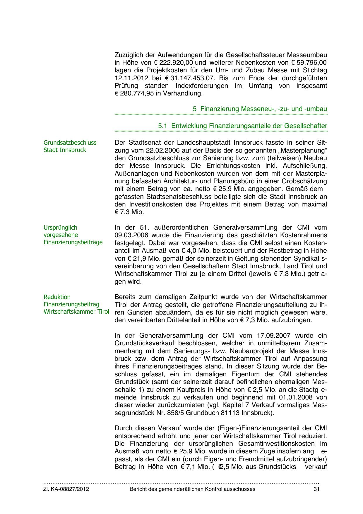 dieser wieder zurückzumieten (vgl. Kapitel 7 Verkauf vormaliges Messegrundstück Nr. 858/5 Grundbuch 81113 Innsbruck).