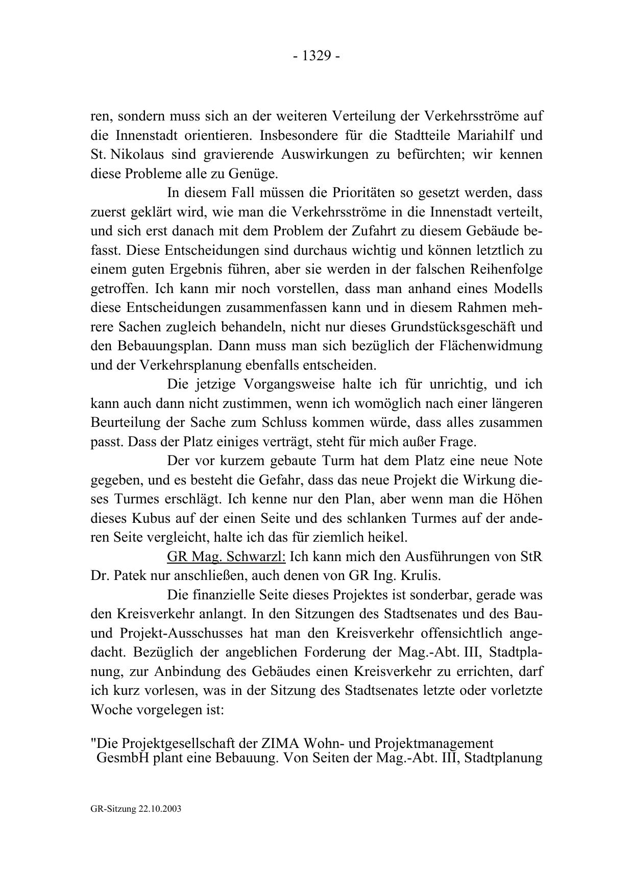 Dr. Patek nur anschließen, auch denen von GR Ing. Krulis.