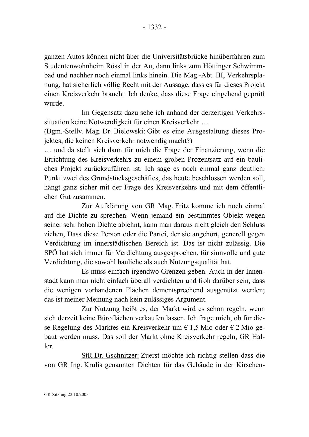 sich derzeit keine Büroflächen verkaufen lassen. Ich frage mich, ob für diese Regelung des Marktes ein Kreisverkehr um € 1,5 Mio oder € 2 Mio gebaut werden muss. Das soll der Markt ohne Kreisverkehr regeln, GR Haller.
