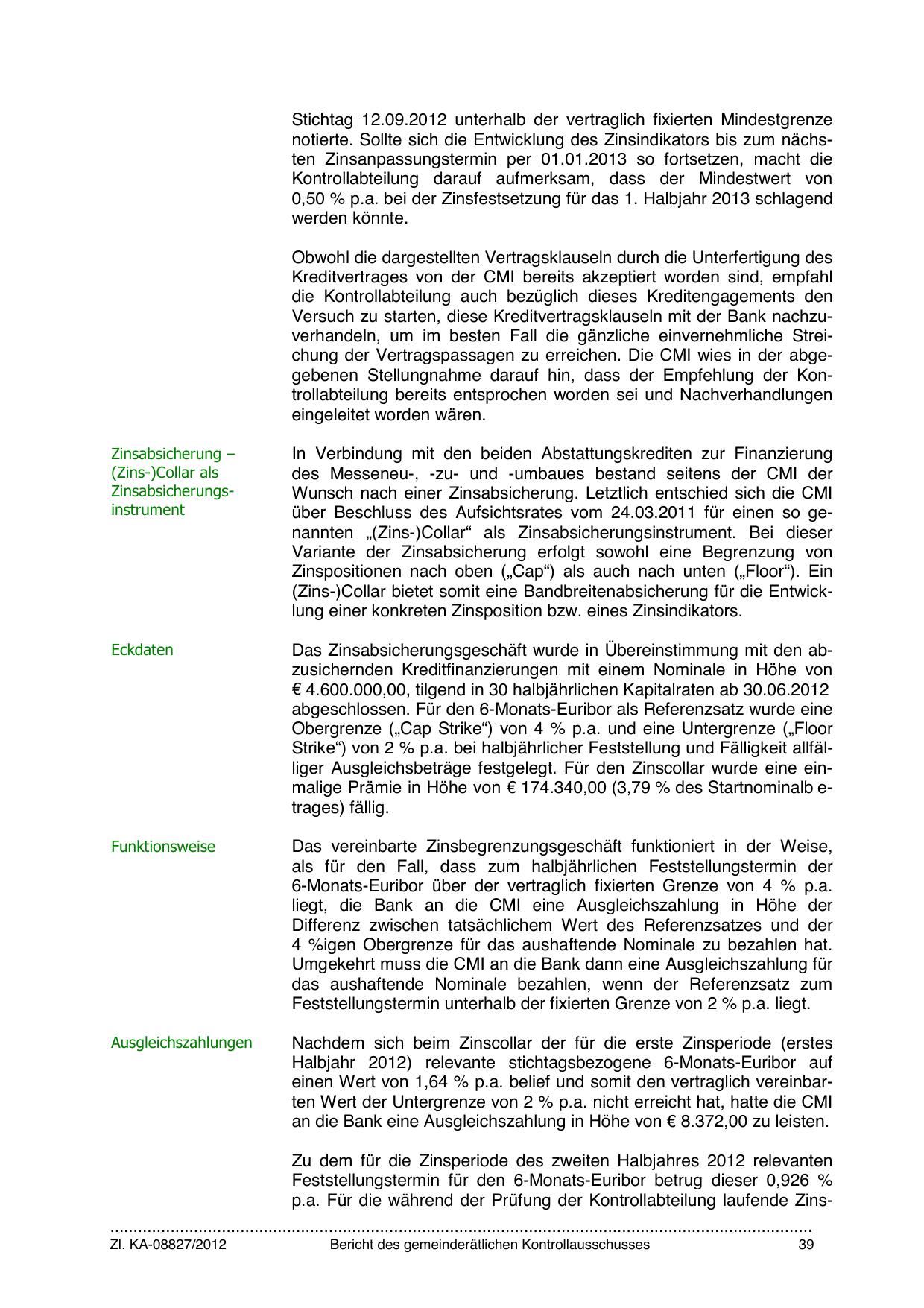 über Beschluss des Aufsichtsrates vom 24.03.2011 für einen so genannten „(Zins-)Collar“ als Zinsabsicherungsinstrument. Bei dieser