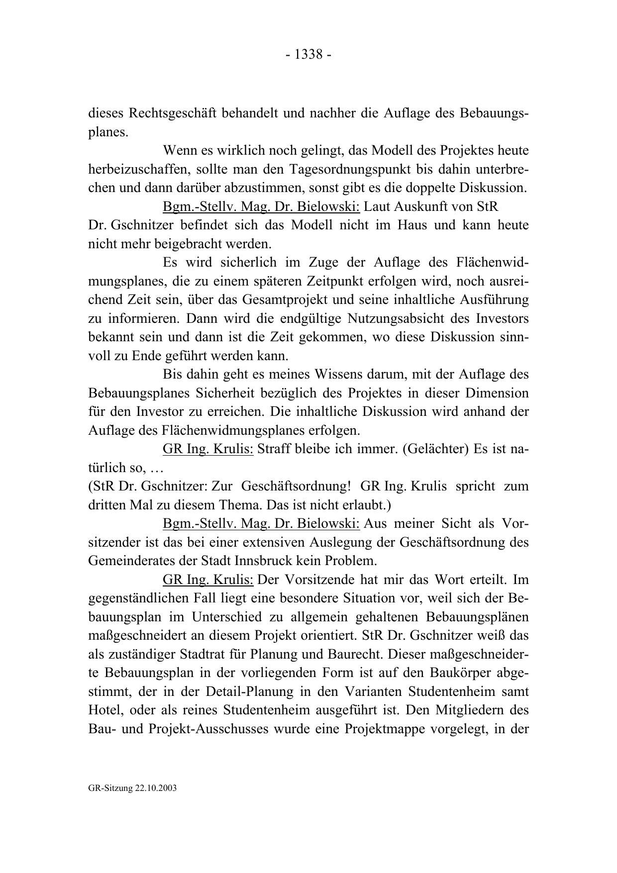 (StR Dr. Gschnitzer: Zur Geschäftsordnung! GR Ing. Krulis spricht zum