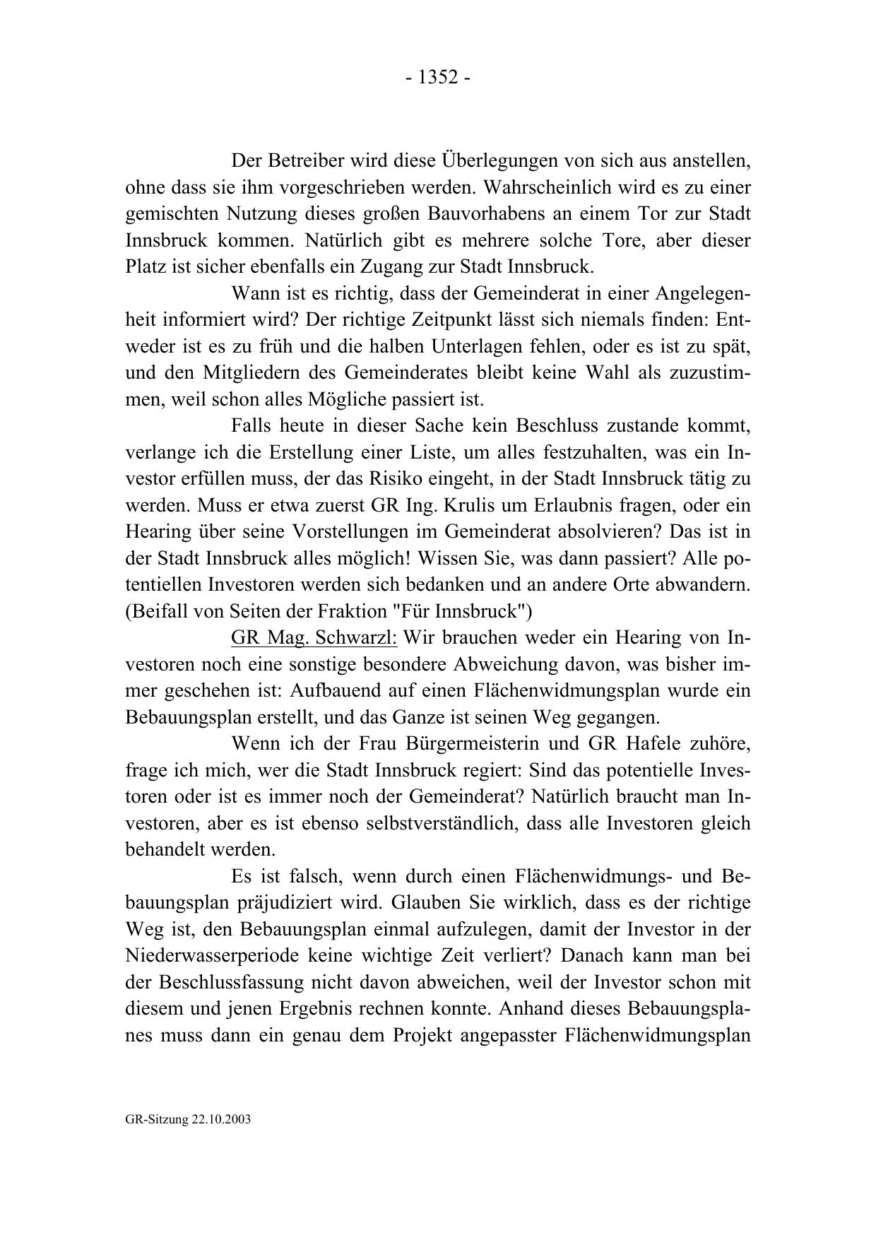 der Stadt Innsbruck alles möglich! Wissen Sie, was dann passiert? Alle potentiellen Investoren werden sich bedanken und an andere Orte abwandern.