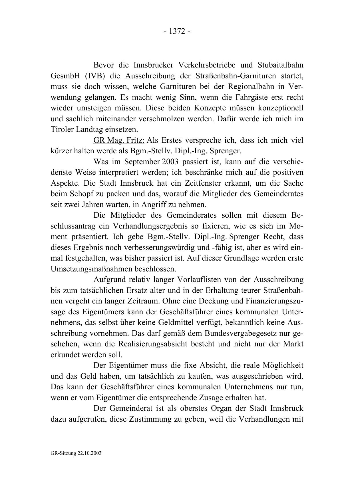 GR-Sitzung 22.10.2003