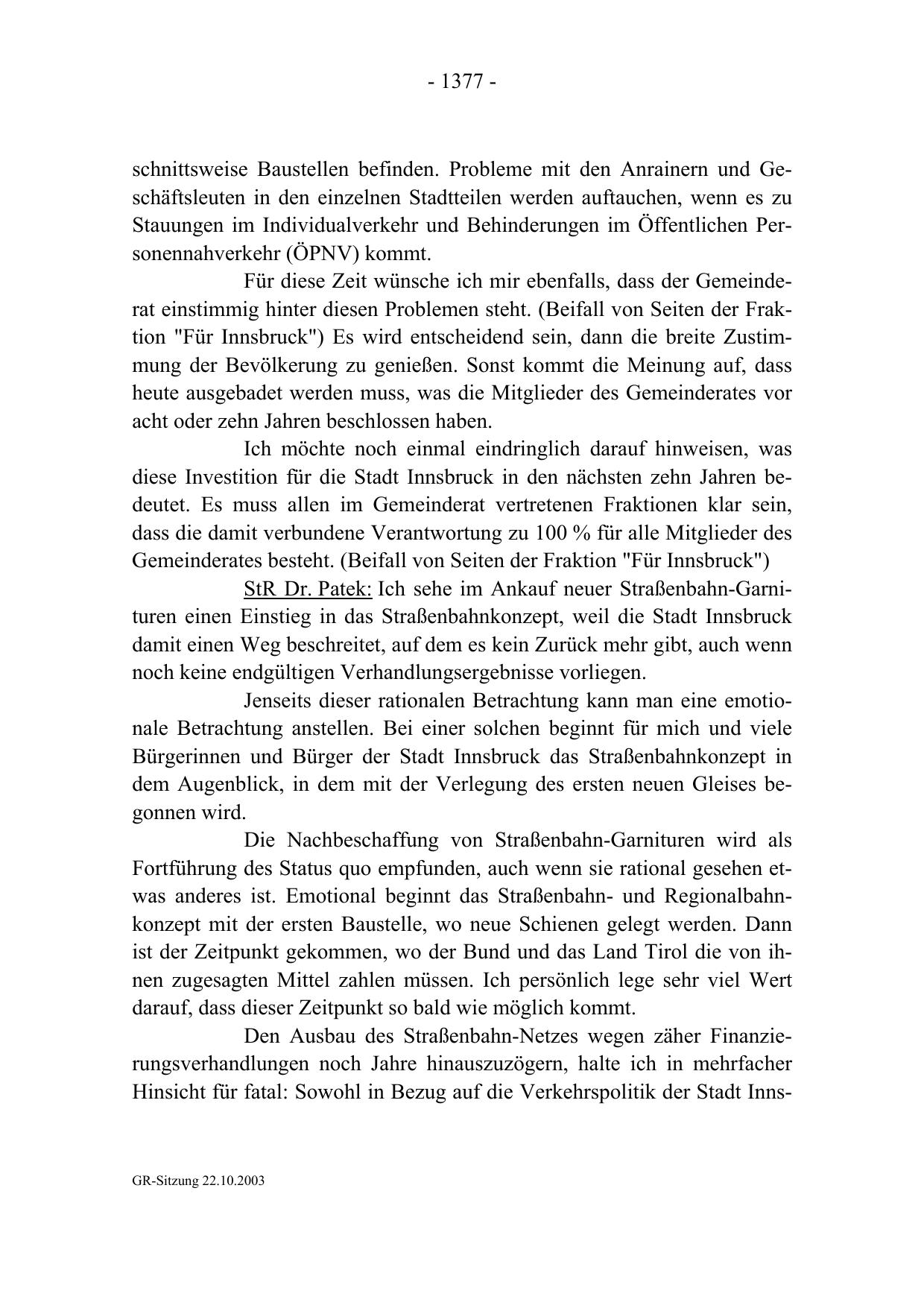 Gemeinderates besteht. (Beifall von Seiten der Fraktion "Für Innsbruck")