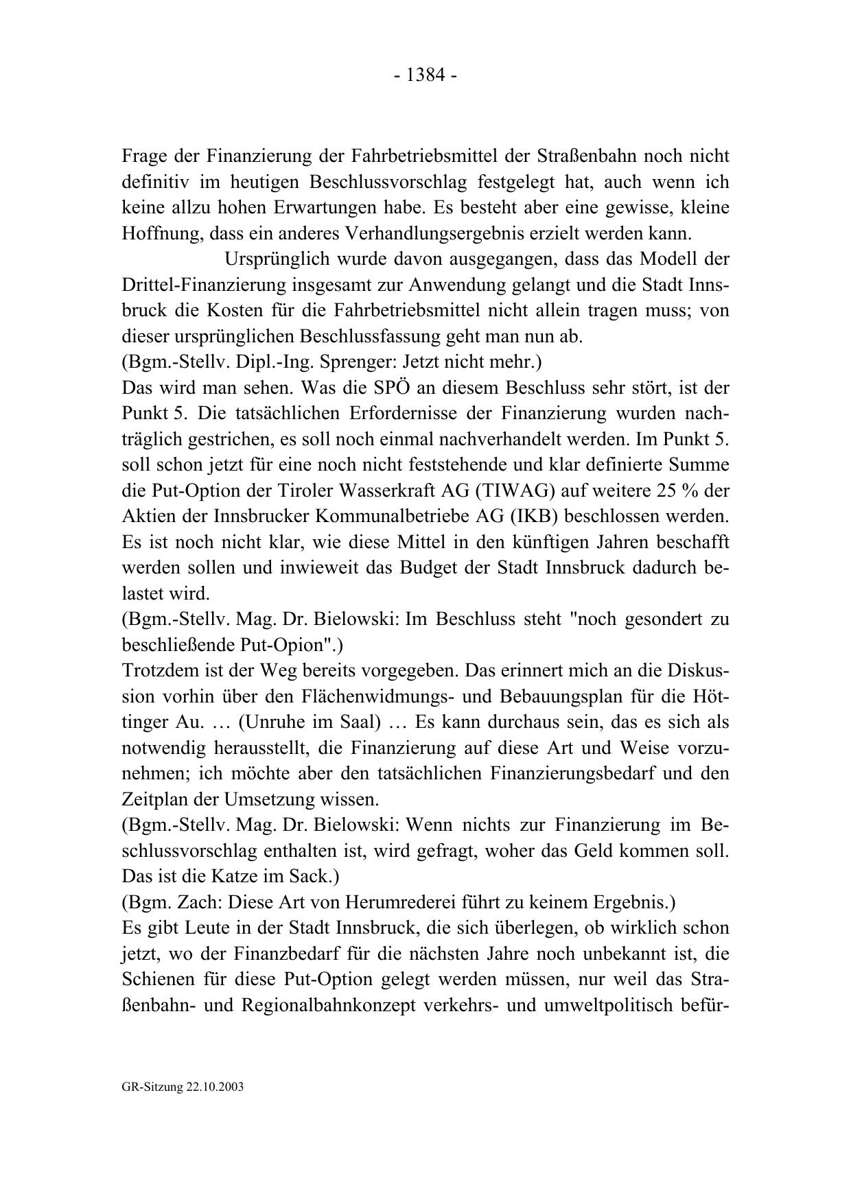 GR-Sitzung 22.10.2003
