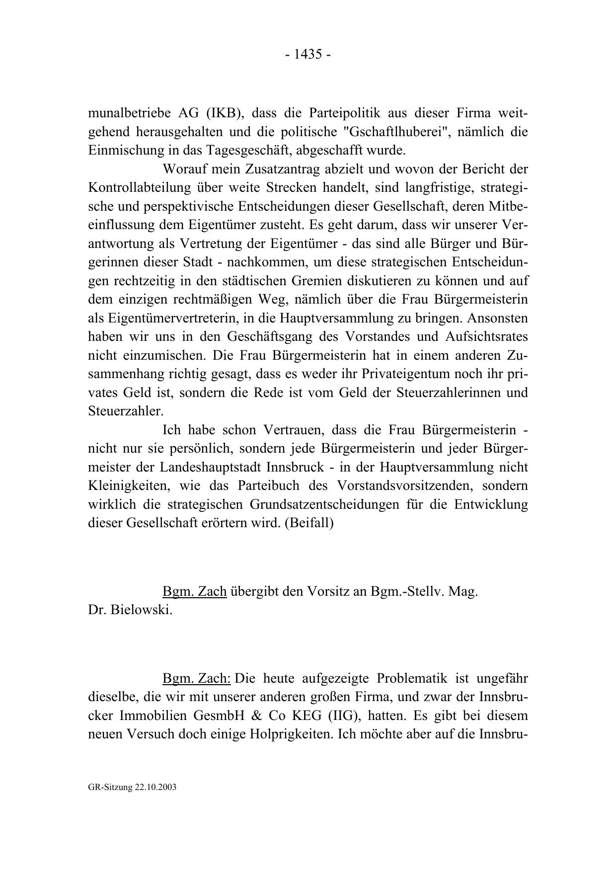 Ich habe schon Vertrauen, dass die Frau Bürgermeisterin nicht nur sie persönlich, sondern jede Bürgermeisterin und jeder Bürgermeister der Landeshauptstadt Innsbruck - in der Hauptversammlung nicht