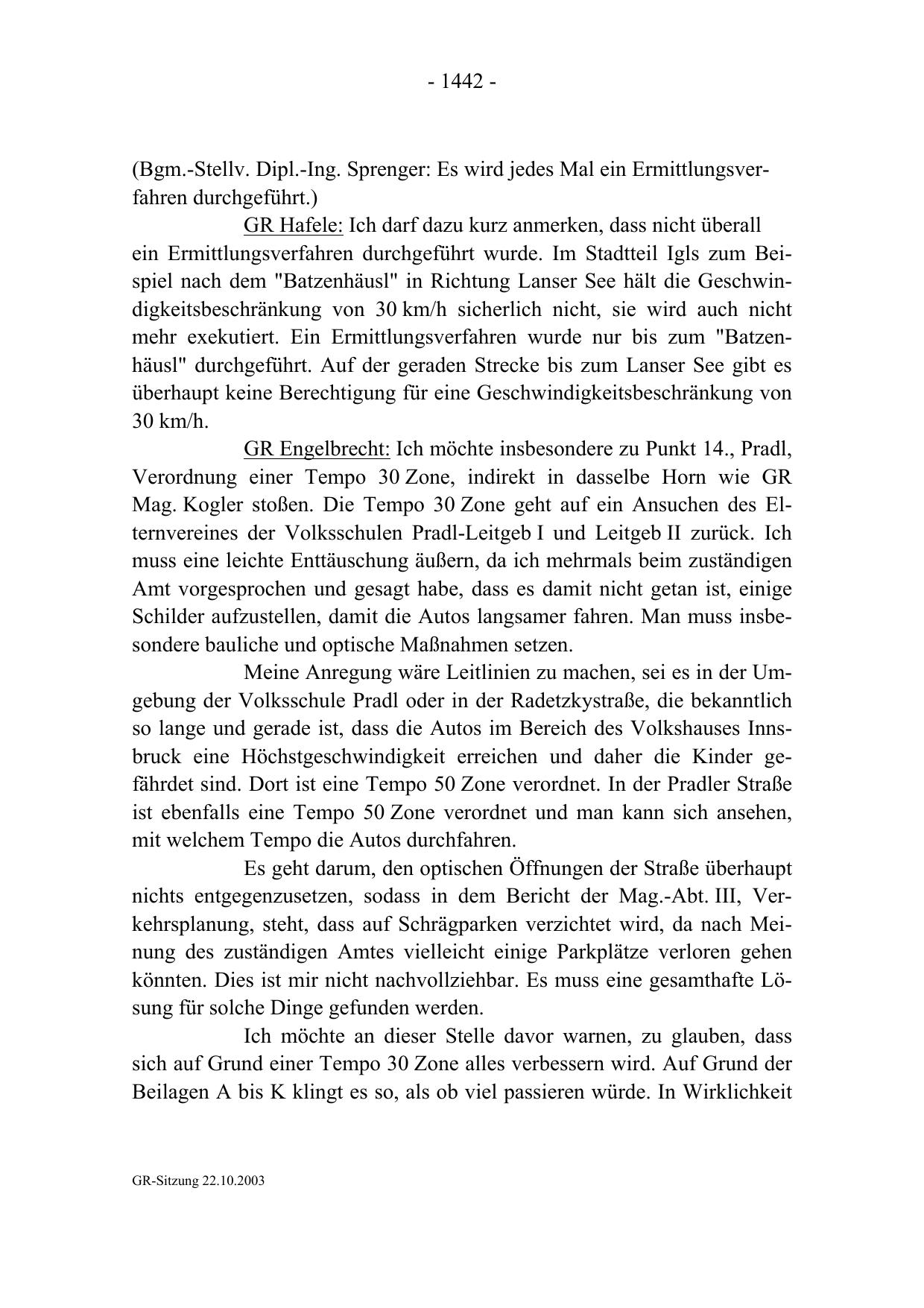 GR Engelbrecht: Ich möchte insbesondere zu Punkt 14., Pradl,