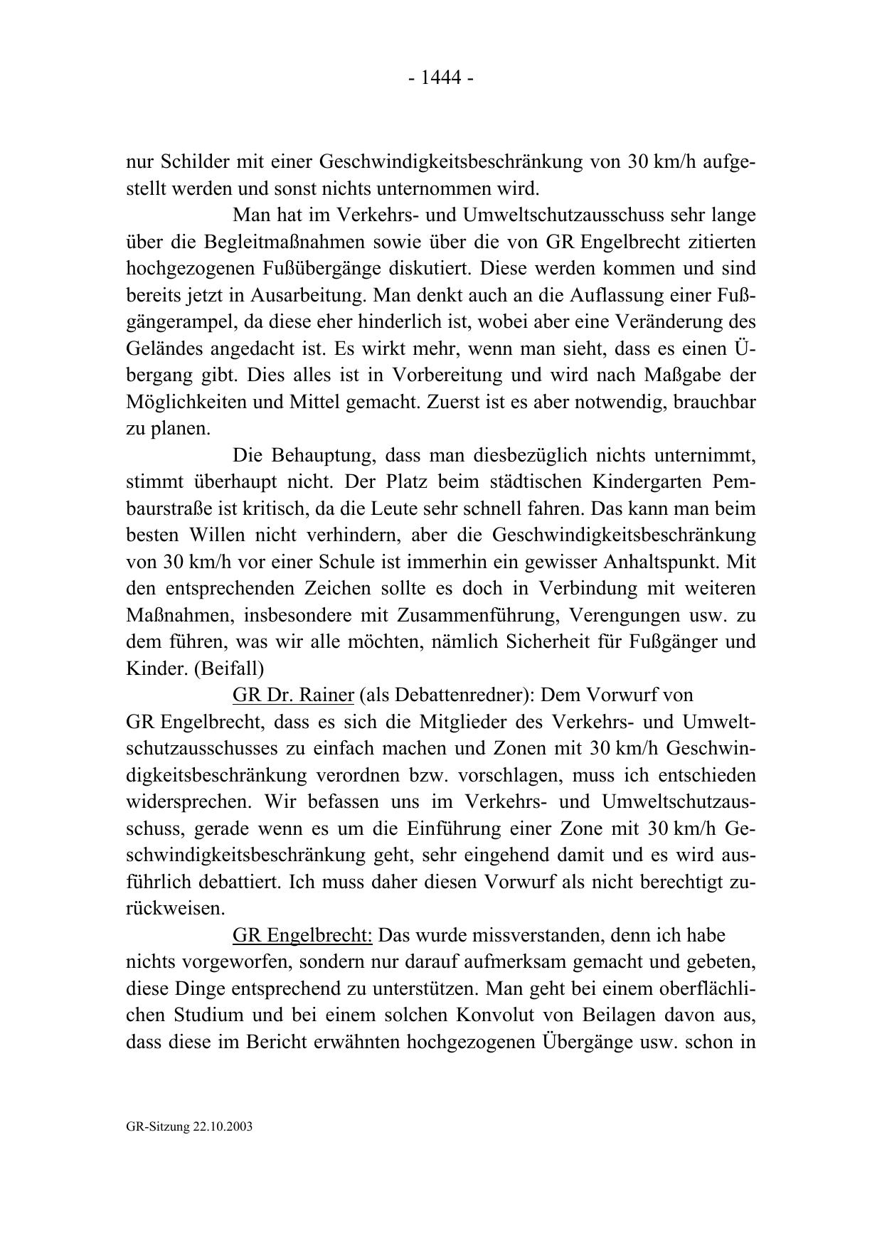 GR Engelbrecht, dass es sich die Mitglieder des Verkehrs- und Umweltschutzausschusses zu einfach machen und Zonen mit 30 km/h Geschwindigkeitsbeschränkung verordnen bzw. vorschlagen, muss ich entschieden