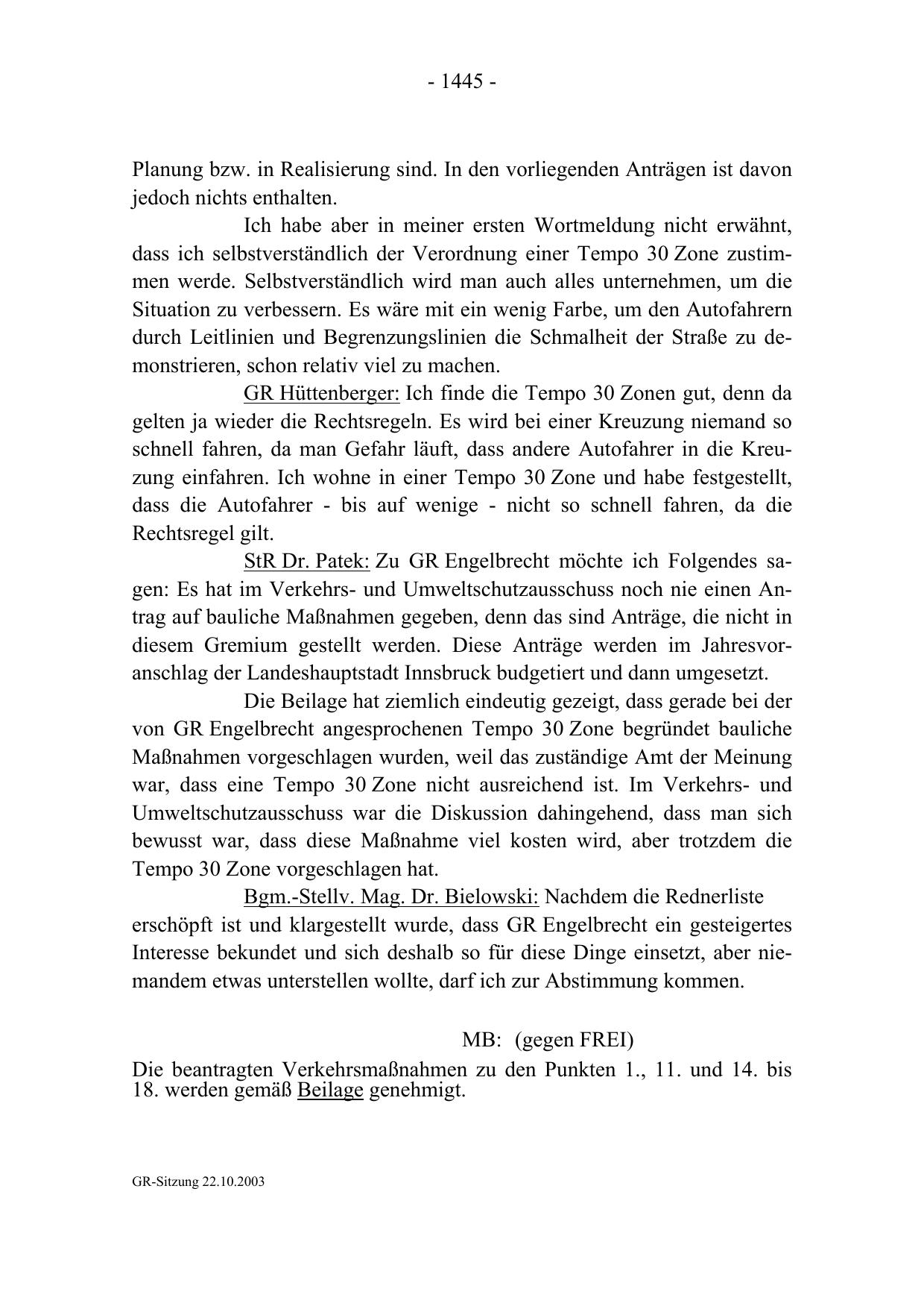 StR Dr. Patek: Zu GR Engelbrecht möchte ich Folgendes sagen: Es hat im Verkehrs- und Umweltschutzausschuss noch nie einen Antrag auf bauliche Maßnahmen gegeben, denn das sind Anträge, die nicht in