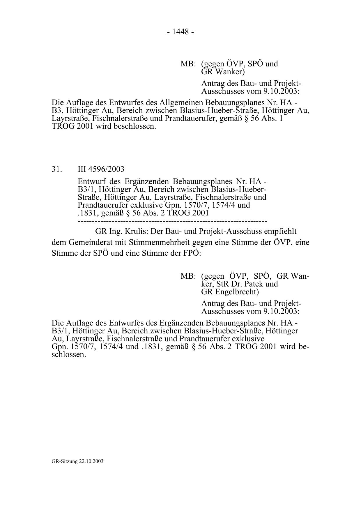 MB: (gegen ÖVP, SPÖ, GR Wanker, StR Dr. Patek und