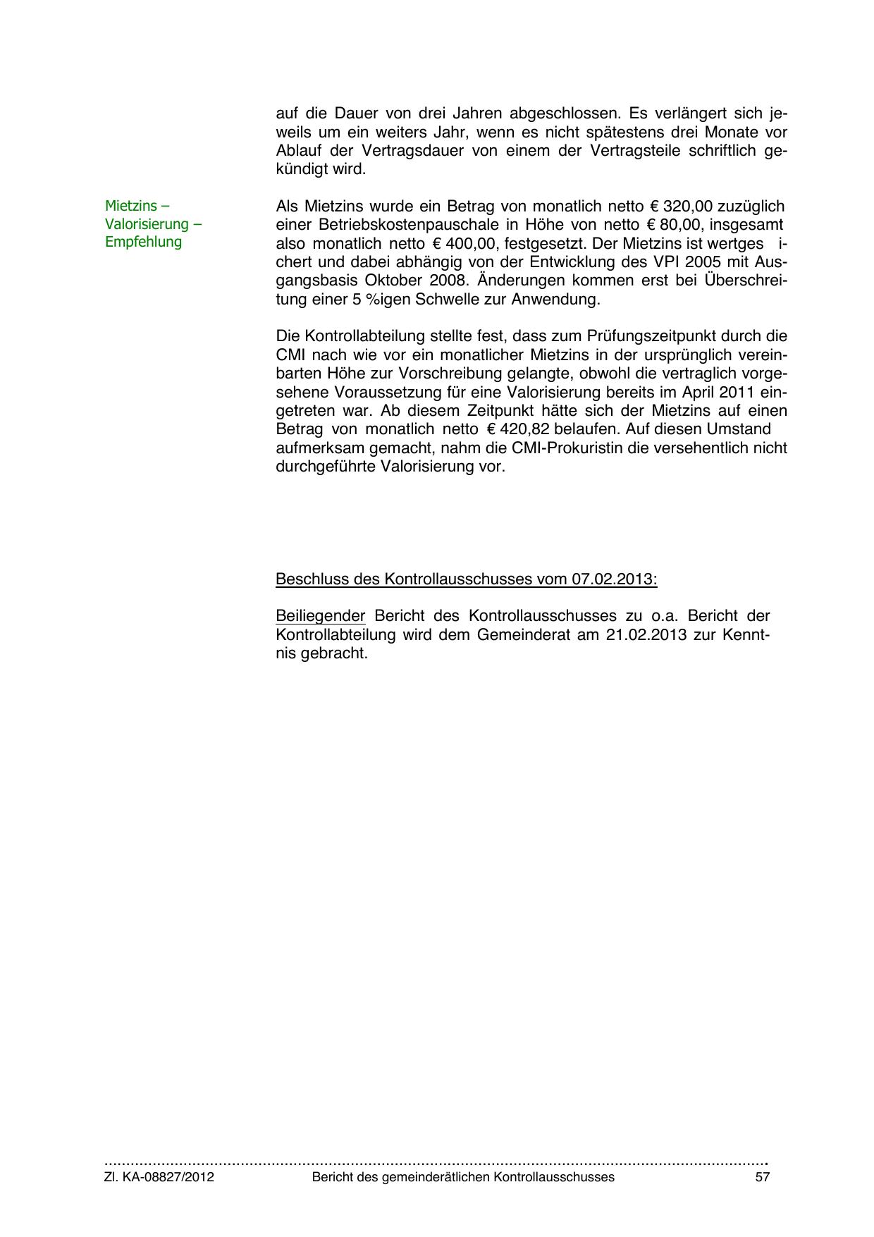 Beschluss des Kontrollausschusses vom 07.02.2013: