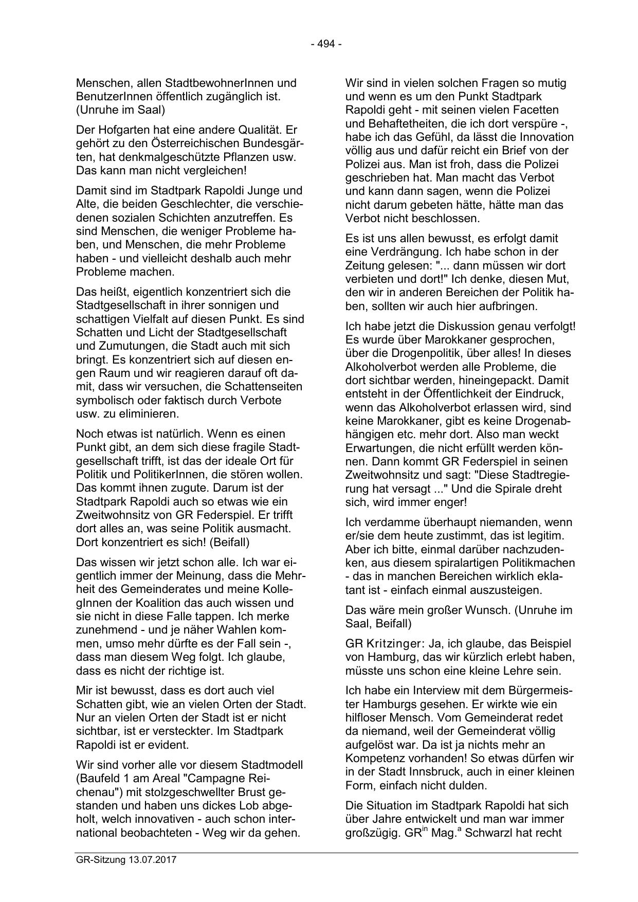 Erwartungen, die nicht erfüllt werden können. Dann kommt GR Federspiel in seinen