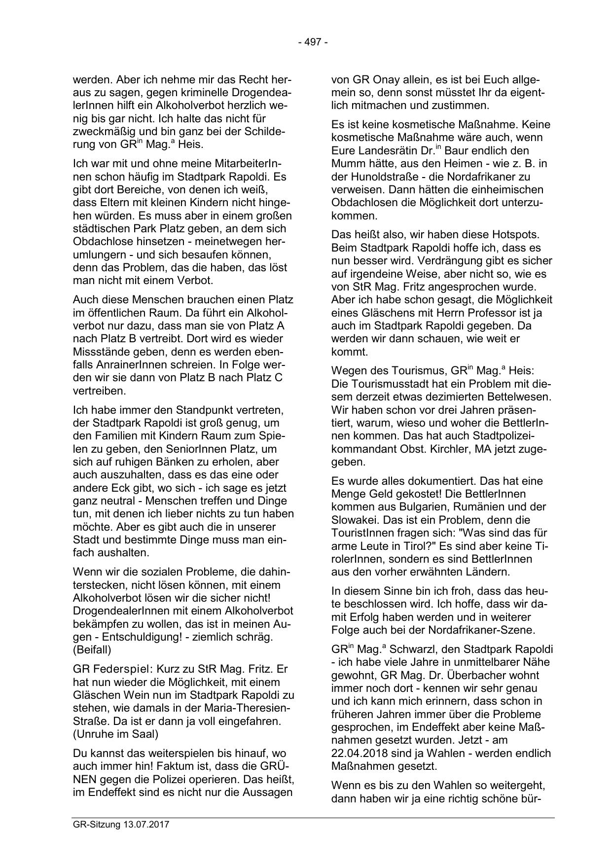 GR Federspiel: Kurz zu StR Mag. Fritz. Er