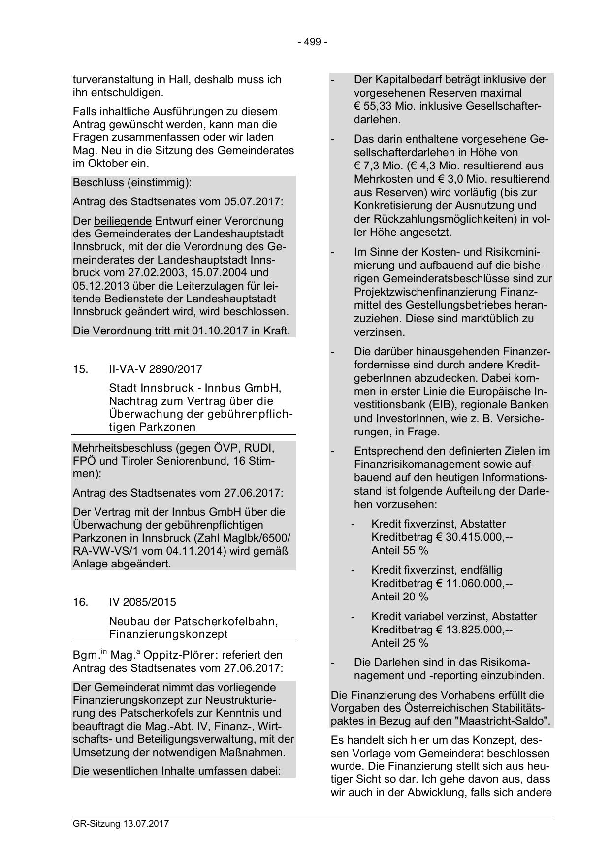 Mehrheitsbeschluss (gegen ÖVP, RUDI,