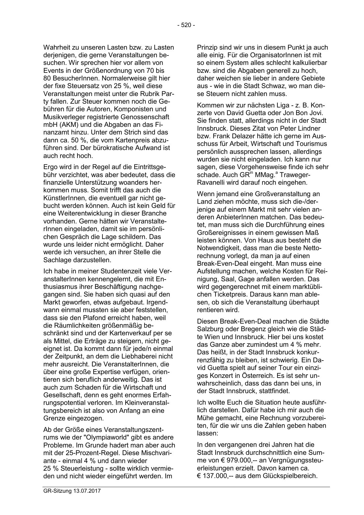 schade. Auch GRin MMag.a TrawegerRavanelli wird darauf noch eingehen.