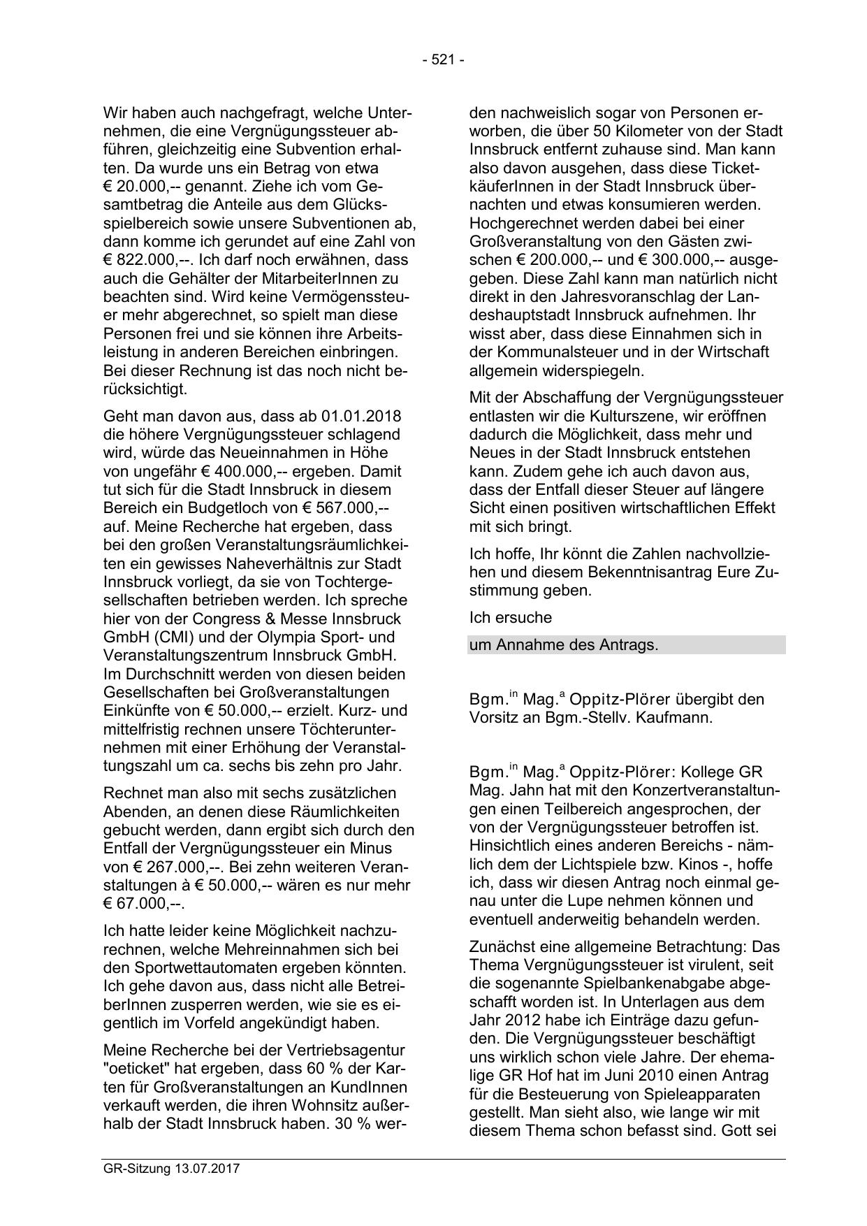 verkauft werden, die ihren Wohnsitz außerhalb der Stadt Innsbruck haben. 30 % werGR-Sitzung 13.07.2017