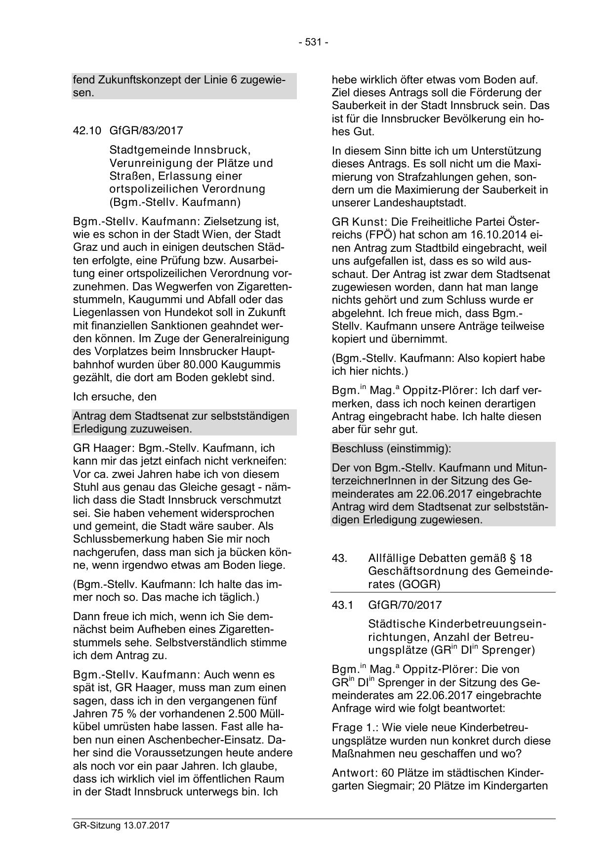GRin DIin Sprenger in der Sitzung des Gemeinderates am 22.06.2017 eingebrachte