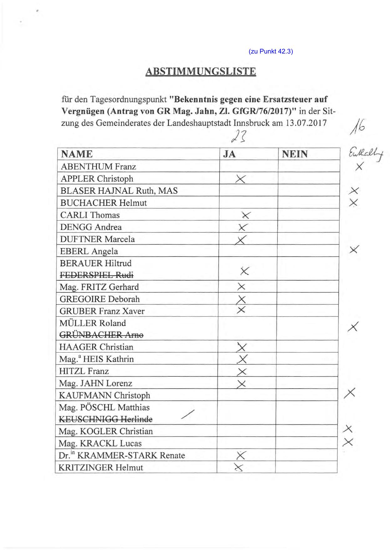 Vergnügen (Antrag von GR Mag. Jahn, ZI. GfGR/76/2017)" in der Sitzung des Gemeinderates der Landeshauptstadt Innsbruck am 13 .07.2017