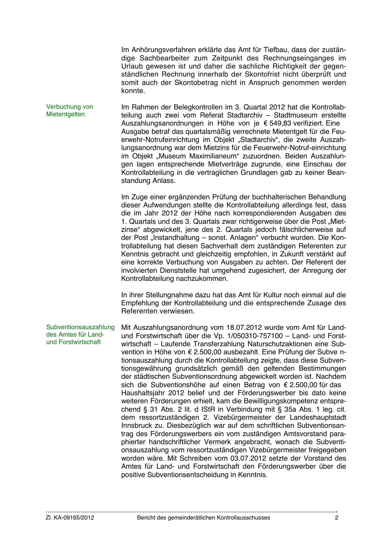 im Objekt „Museum Maximilianeum“ zuzuordnen. Beiden Auszahlungen lagen entsprechende Mietverträge zugrunde, eine Einschau der