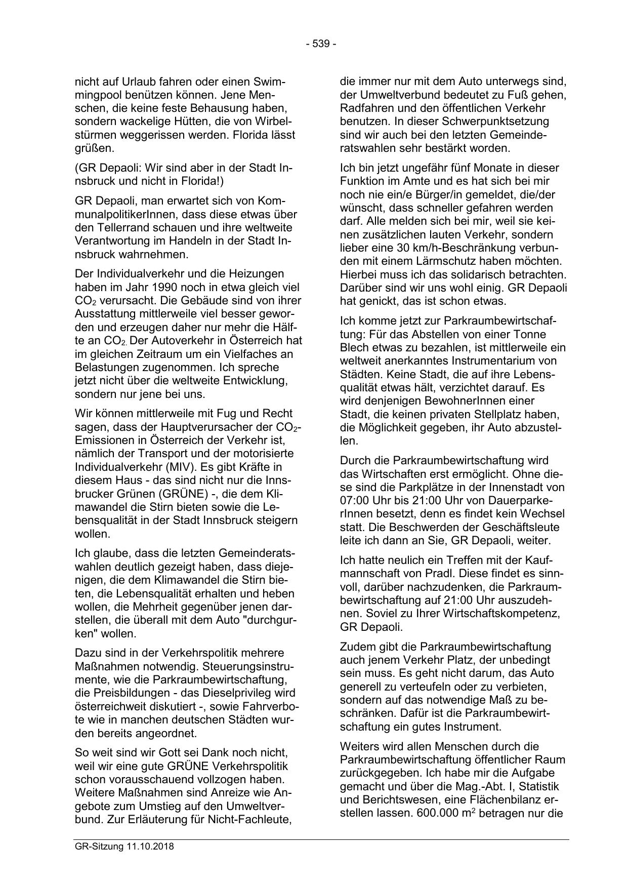 (GR Depaoli: Wir sind aber in der Stadt Innsbruck und nicht in Florida!)