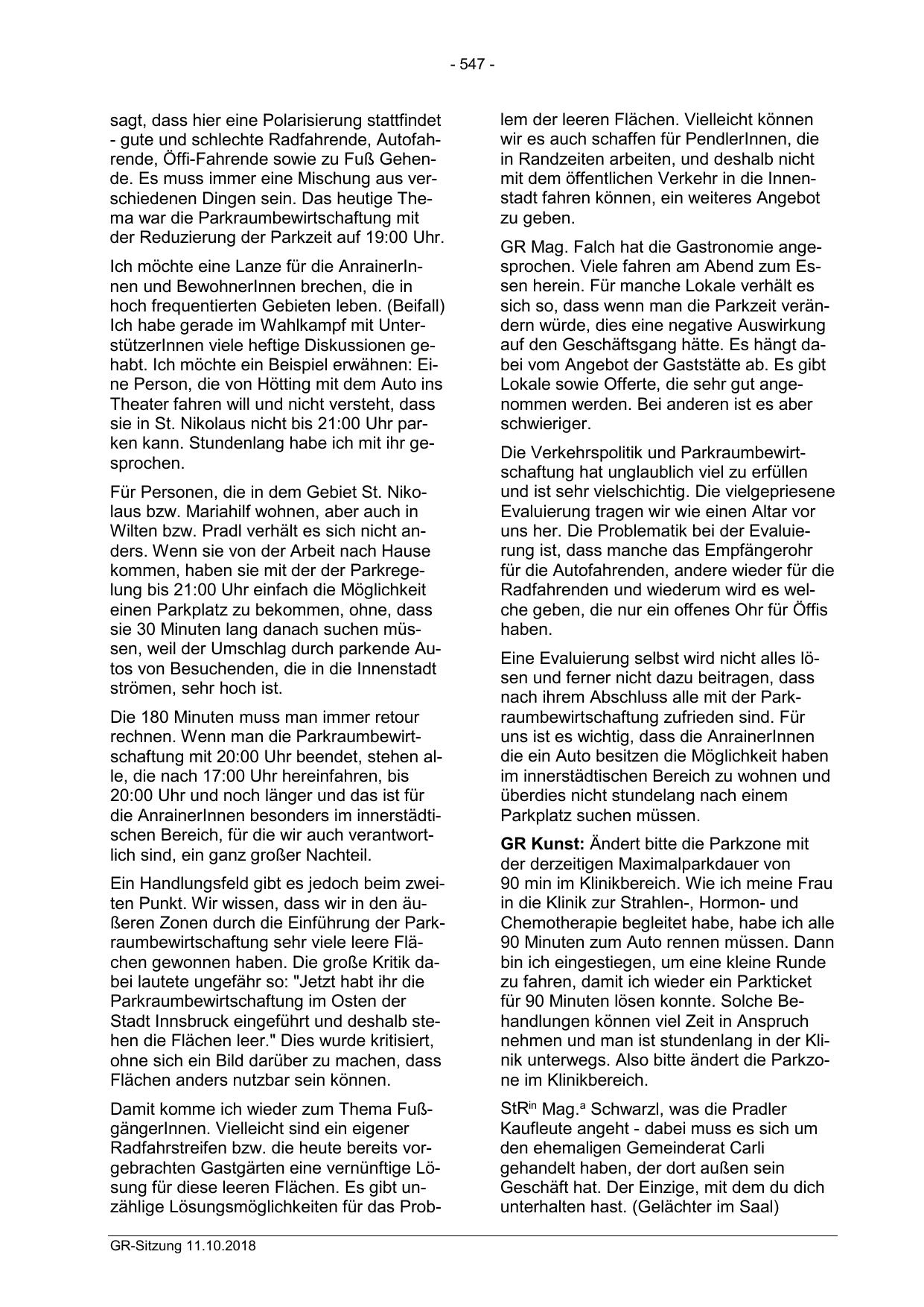Stadt Innsbruck eingeführt und deshalb stehen die Flächen leer." Dies wurde kritisiert,